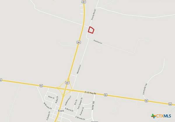 From Evant go north on Hwy 281 for .7 miles then turn right on Memory Lane Access RD and go 400 ft and then you're at the house.