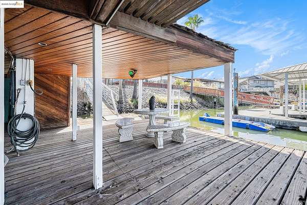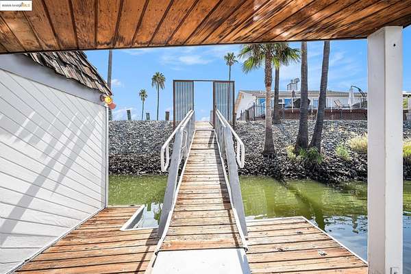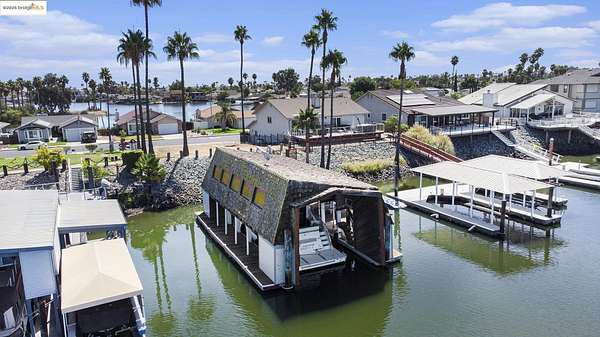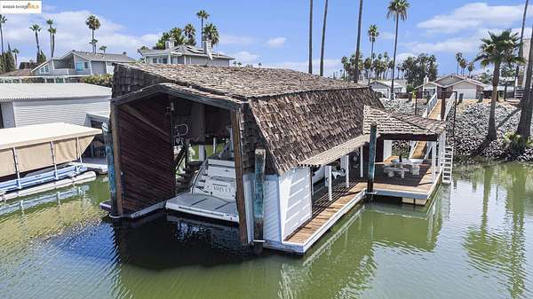 Est $7,380/moDelta Waterfront Lot with Fully Improved Boat Shed - Ready to Build! This rare waterfront parcel comes fully equipped with power, water, and sewer already in place-just bring your home plans! The custom boat shed features 200-amp electrical service, dual 50-amp boat outlets, multiple 20-amp outlets, a full bathroom with shower, kitchenette with appliances, laundry, and generous storage areas. Designed for stability with earthquake and wind tie-downs, the dock feels solid underfoot. Moorage for a 60' boat inside the shed, plus side ties for additional vessels. Secure gated access with deadbolts throughout. Enjoy life on the Delta now while you plan your future dream home!