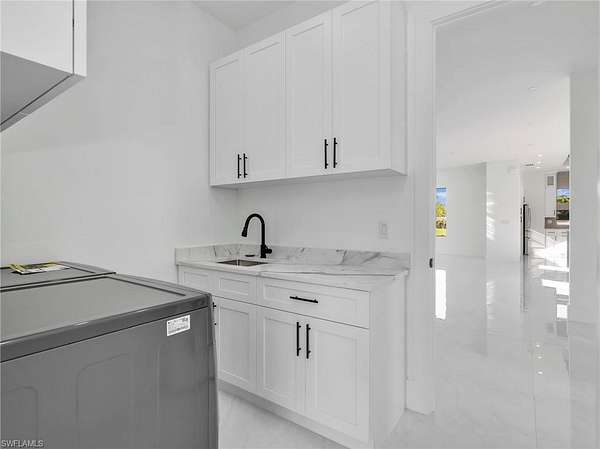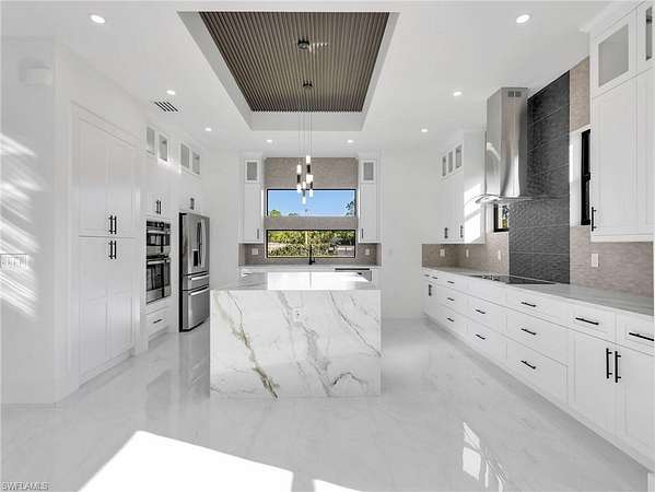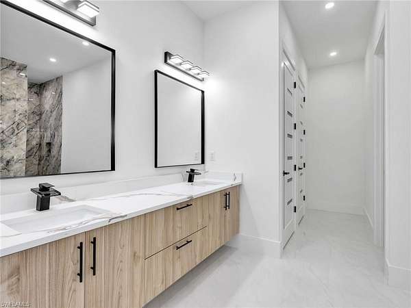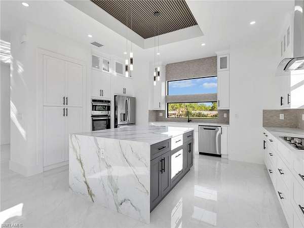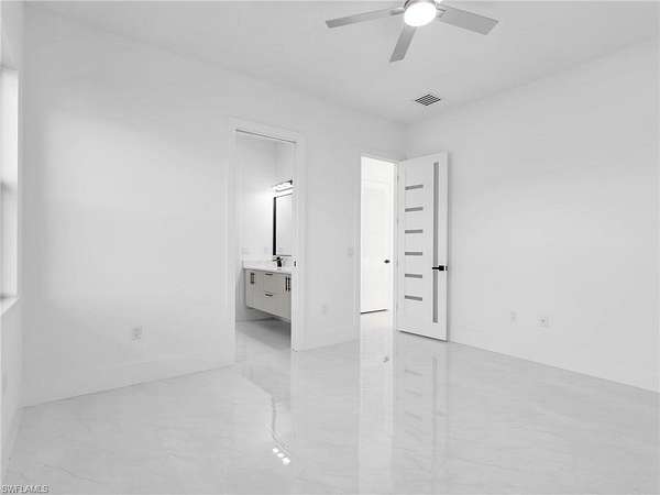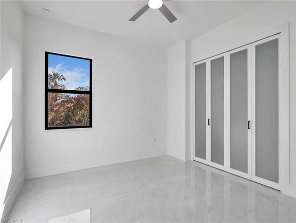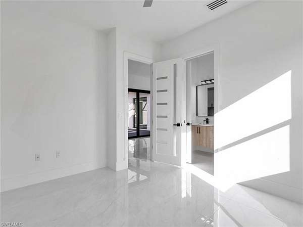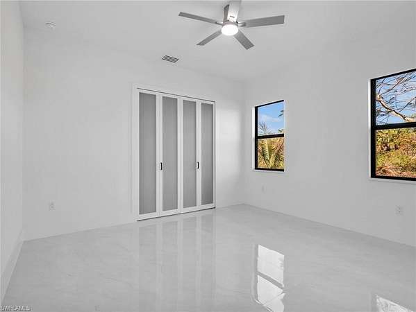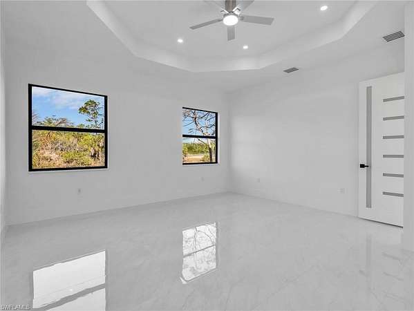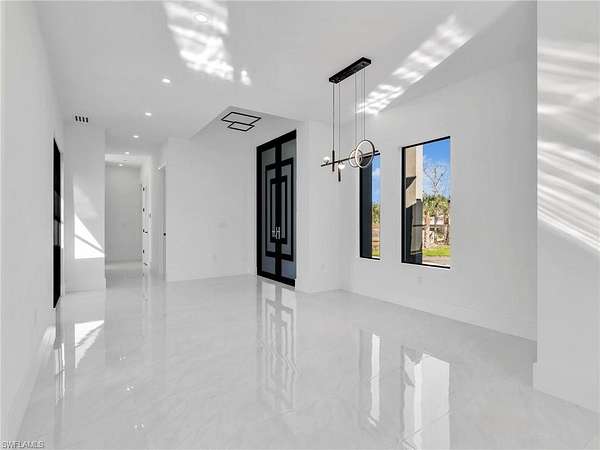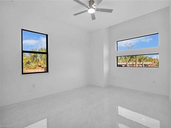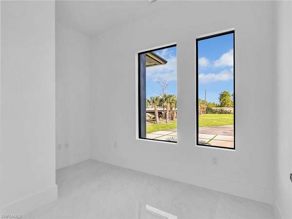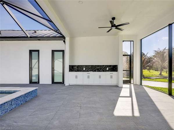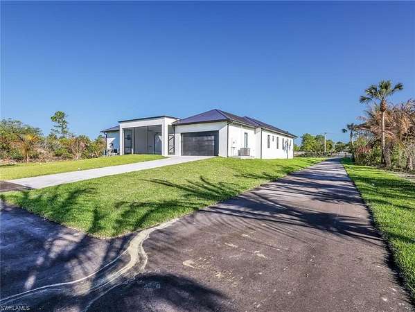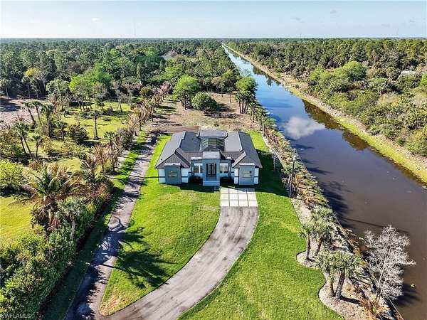 Discover this newly constructed center-courtyard pool home in desirable Golden Gate Estates. This thoughtfully designed property features 4 bedrooms plus a den, 3.5 bathrooms, and 2,845 sq ft under air. Enter through the solar-powered gated entrance with convenient front guest parking and access to the private rear garage. The home includes a smart saltwater pool with outdoor kitchen, metal roof, and whole-home reverse osmosis water system. Inside, you'll find quartz countertops throughout the kitchen and bathrooms, hurricane-impact windows, and dual A/C systems for comfort in the Florida climate. Additional upgrades include custom-built closet systems already installed for easy organization. The unique courtyard design offers a private outdoor living space perfect for relaxing or entertaining. There is a canal next to the property which allows for a deck to be built on with a gazebo. The lot is also 100% upland which will allow you to build a guesthouse in the future where there are currently plants and fruits planted.