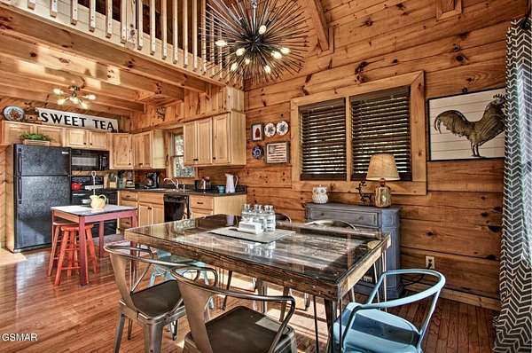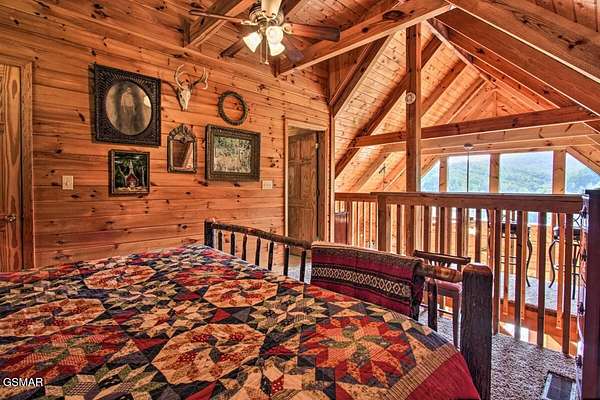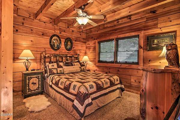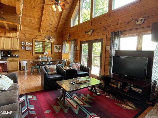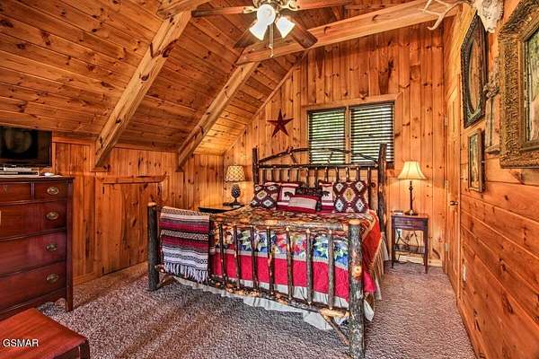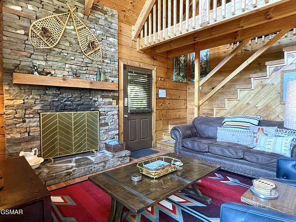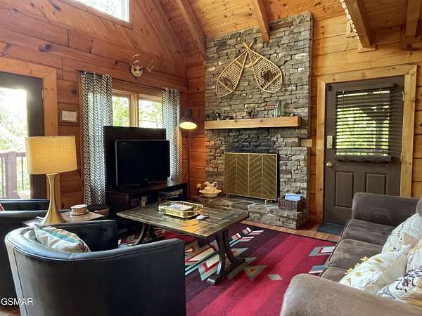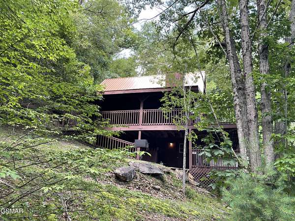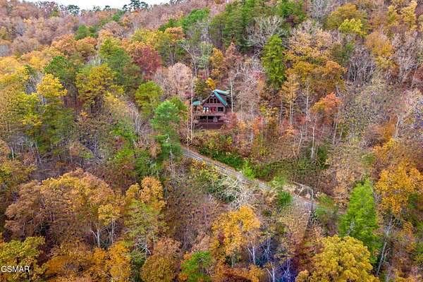 Nestled on a private mountainside, this charming cabin offers a serene retreat on 2.5 acres of picturesque woodlands w/no HOA. Surrounded by a lush mature forest, this cabin boasts a stunning mt view from two deck levels while a creek below provides a soothing soundtrack, enhancing the peaceful connection with nature. Inside are wooden beams, an authentic stacked stone fireplace, a wall of windows to enjoy the view & open floor plan decorated in hip mt decor with sleeping accommodations for 8(could be 10 with a living rm sofa bed). Property provides all of this charm & solitude & only a few minutes from the busy pky that connects Pigeon Forge & Gatlinburg. Perfect for STR investors. New metal roof 2022, New HVAC 2024, water filtration system, new w/d, wifi thermostats & furniture, private septic & well. Also included for family & guests to enjoy - pool table & hot tub. This inviting cabin, convenient location, amenities & natural private setting of ''Scenic Solitude'' can be yours for investment & enjoyment.