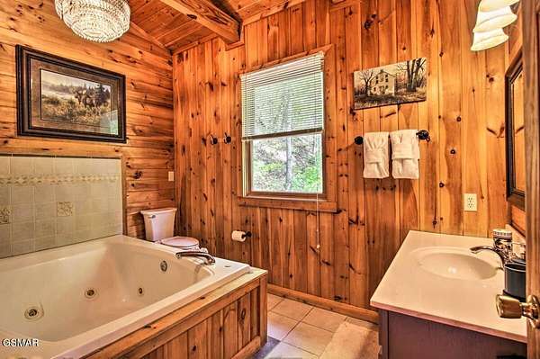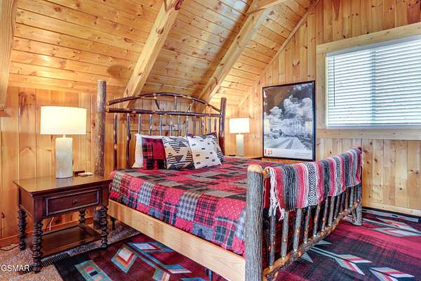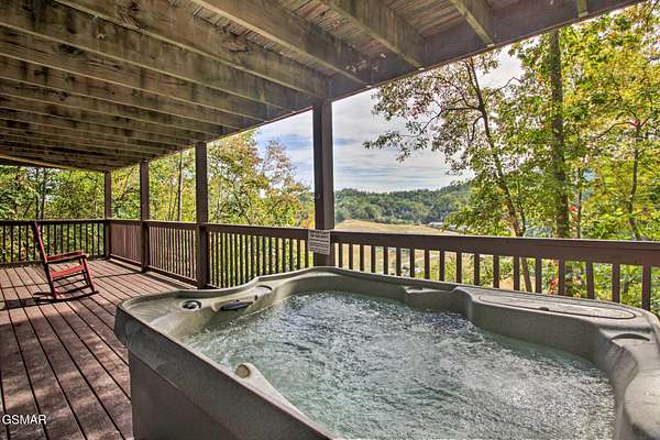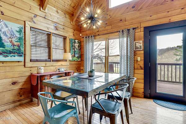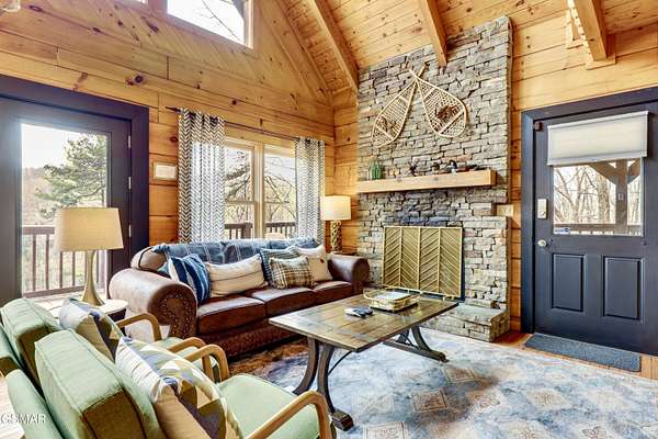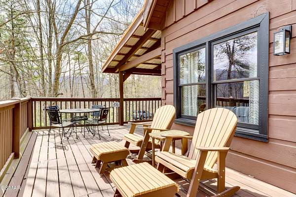 Nestled on a private mountainside, this newly renovated charming cabin offers a serene retreat on 2.5 acres of picturesque woodlands w/no HOA. Surrounded by a lush mature forest, this cabin boasts a stunning mountain view from two deck levels while a creek below provides a soothing soundtrack, enhancing the peaceful connection with nature. Inside are wooden beams, an authentic stacked stone fireplace, a wall of windows to enjoy the view & open floor plan decorated in hip mountain decor with sleeping accommodations for 8(could be 10 with a living rm sofa bed). Property provides all of this charm & solitude & only a few minutes from the busy pky that connects Pigeon Forge & Gatlinburg. 20 minutes to Dollywood. Perfect for STR investors. New metal roof 2022, New HVAC 2024, water filtration system, new w/d, wifi thermostats & completely furnished, private septic & well. Also included for family & guests to enjoy - pool table & hot tub. This inviting cabin, convenient location, amenities & natural private setting of ''Scenic Solitude'' can be yours for investment & personal enjoyment.