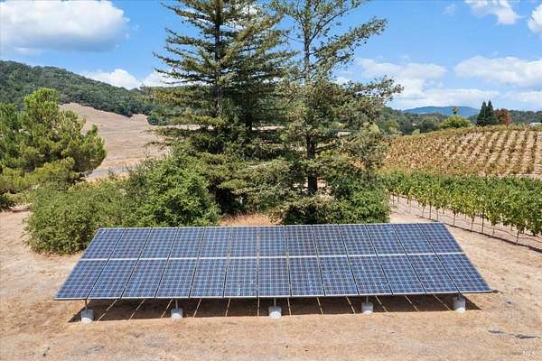 Lytton Manor Vineyard is a private 20.05-acre estate just 10 minutes from Healdsburg's renowned plaza. Set across two 10 acre parcels (910 Lytton Springs and 1730 Chiquita Road), it features a bespoke 2,637 sq. ft. ranch-style home perched on a hill, complete with 3 bedrooms, 2.5 baths, an attached garage, and a whimsical tower. The residence is embraced by 12.2 acres of premium Cabernet Sauvignon, planted in 2019. Panoramic vineyard views pour through sweeping bay windows in the living room, while the spacious dining room and large kitchen with generous storage invite effortless entertaining. The master suite flows into the tower, both overlooking the vines, and a cozy basement awaits conversion into a wine cellar. Beyond the home, two productive wells (one on each parcel), an acre-foot irrigation pond, a free-standing barn, and a custom-built diesel generator ensure self-sufficiency. The all-electric house is approached by a charming driveway winding past apple, fig, and olive trees, with a separate drive for vineyard access. Nestled in Sonoma County's famous Dry Creek Valley its oldest recognized wine-growing regionLytton Manor is uniquely framed by the legendary vineyards of Ridge Vineyards Lytton Springs.