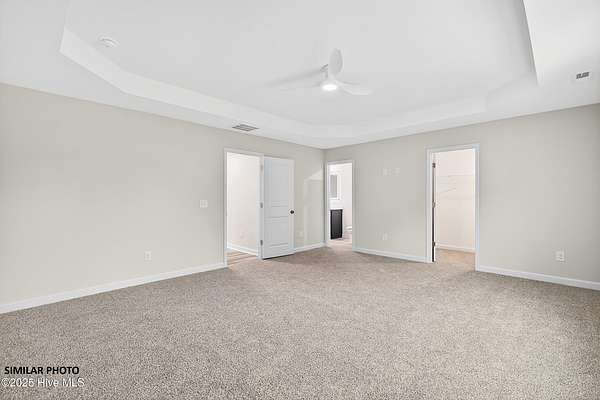 - Ceiling Fan(s), Kitchen Island, Master Downstairs, Pantry, Tray Ceiling(s), Walk-In Closet(s), Walk-In Shower