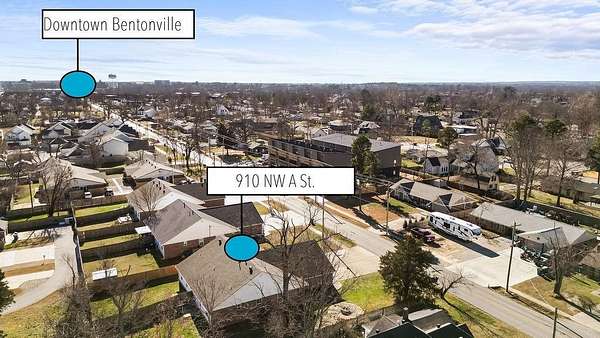 Est $6,381/moLand value opportunity in a strong Bentonville infill location. Property is offered for redevelopment potential only. Existing improvements are conveyed as-is with no value assigned but is habitable. Buyer to verify zoning, allowable uses, density, utilities, access and development feasibility. Close proximity to downtown Bentonville amenities, trails, and major area drivers. Suitable for builders or developers seeking an infill or teardown project in a high-demand market.