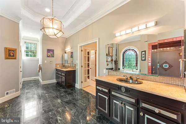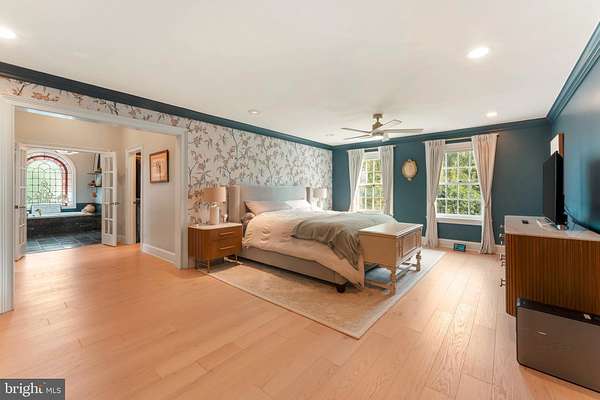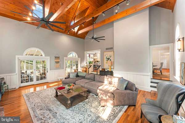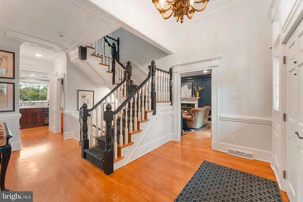 Set amid almost seven acres of beautifully landscaped grounds, this exceptional Southern style Colonial estate embodies timeless elegance, masterful craftsmanship, and a rare sense of character and grace. The property encompasses a stately six bedroom main residence, a charming one bedroom guest cottage, and impressive garage accommodations totaling seven bays, all meticulously maintained and thoughtfully designed for both grand entertaining and everyday comfort. As you approach the property, an extensive and eye catching cobblestone and brick driveway sets the tone, creating a dramatic first impression and offering a glimpse of the timeless beauty that awaits beyond. From the moment you arrive, the home's classic facade and extensive millwork hint at the refinement within. Step through the front door and be greeted by a sweeping staircase and a foyer that immediately conveys the home's extraordinary quality. Every inch reflects superior craftsmanship, from the beautiful oak floors to the dentil and crown moldings, wainscoting, and custom woodwork found throughout. A richly appointed office with intricate millwork, custom built-ins and a wood burning fireplace with marble surround provides an inspiring workspace, while the banquet sized dining room is ideal for elegant gatherings. The heart of the home is the remarkable great room, an architectural showpiece with massive exposed beams, cathedral ceilings, a dramatic floor to ceiling fieldstone fireplace, and gleaming Brazilian cherry floors. French doors open to a large screened porch, perfect for relaxed seasonal dining or quiet evenings overlooking the lush landscape. The chef's eat-in kitchen is a true standout, both stylish and functional, featuring custom cabinetry, granite countertops, and professional grade stainless steel appliances including a Wolf commercial gas cooktop with electronic display, dual Wolf convection ovens, over-sized refrigerator, and walk in pantry. The primary suite, beautifully remodeled in 2024, offers a serene retreat with two closets, a walk in closets and a custom designed built-ins, a private laundry room with dual washers and dryers, and a luxurious spa bath with a whirlpool tub and exquisitely tiled shower. Five additional bedrooms and well appointed bathrooms provide space for family and guests alike spread out on 2 floors. The daylight lower level was designed for entertaining, complete with a kitchenette with quartz countertops, a powder room, and a cozy wood burning fireplace. French doors lead out to a covered brick patio overlooking the heated in ground pool and spa, surrounded by terraced walkways, hardscaping, and mature plantings, creating a private outdoor sanctuary. The guest cottage is equally inviting, featuring vaulted ceilings, wood floors, a full cherry kitchen with banquette, a spacious bedroom with skylit ceramic bath boasting a clawfoot tub and mosaic tile floor, plus an additional full bath and laundry on the entry level. Every detail of this property has been carefully considered, from the extensive exterior trim work and PVC crown molding to custom window treatments in every bedroom and a whole home diesel generator serving both the main house and guest cottage. A stately brick walkway leads through enchanting gardens and mature trees, creating an atmosphere of privacy and tranquility rarely found today. Ideally located near fine dining, shopping, and scenic state parks, with easy access to I 95, this remarkable estate blends classic Southern charm with refined modern living. Exuding warmth, craftsmanship, and enduring beauty, this is a home that must be experienced to truly be appreciated.