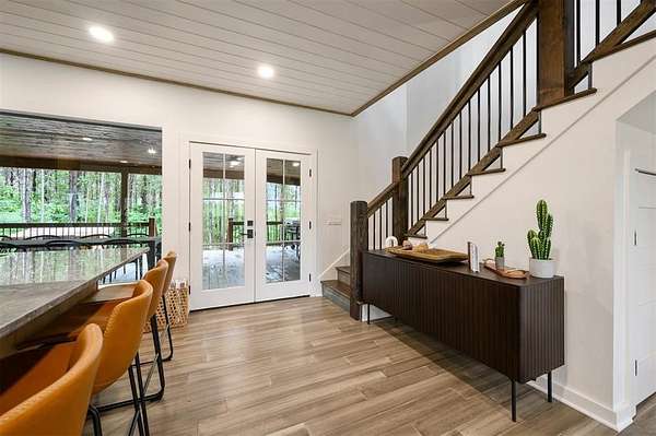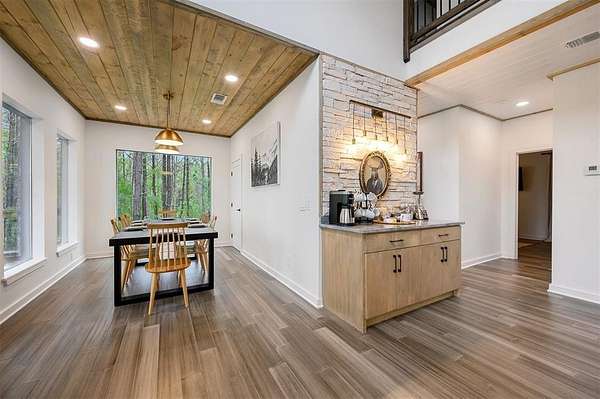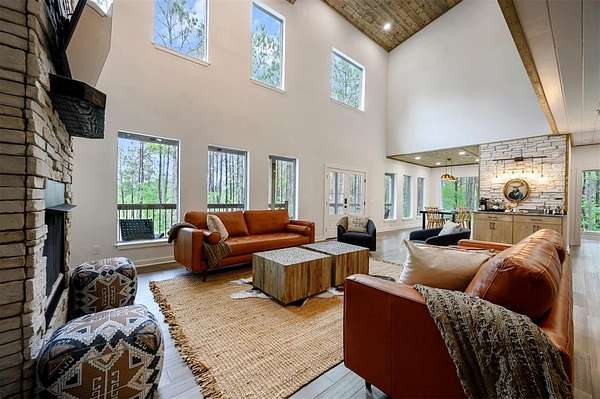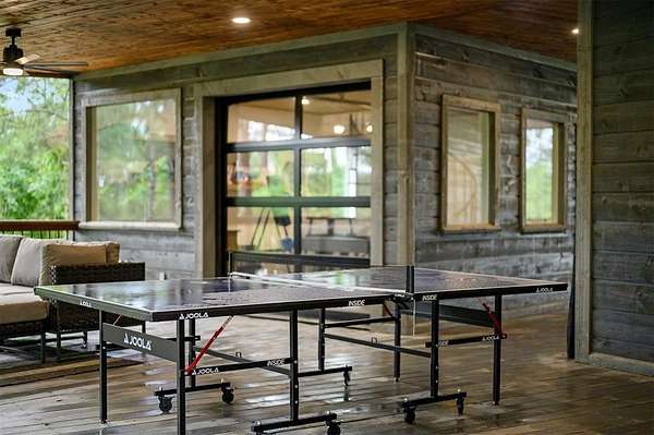 Discover your perfect retreat at Sunny Sky Sanctuary, a stunning & spacious cabin nestled among the towering pines. This expansive cabin is designed to comfortably host 24 guests, w/ potential to accommodate up to 30, making it ideal for family reunions, group vacations, or gatherings w/ friends. From the moment you arrive, you'll be captivated by the abundant indoor/outdoor entertainment options. Challenge your friends to a game in the game rm, featuring a pool table, ping pong, & an axe-throwing dart board, or unwind in the hot tub w/ views of the surrounding forest. The property boasts 2,800 sq ft of covered deck space, perfect for enjoying a meal, gathering around the fire pit, or simply lounging w/ a good book while soaking in the serene natural surroundings. Whether you're looking to relax or play, Sunny Sky Sanctuary provides ample space & a tranquil atmosphere for everyone to spread out & enjoy. Inside, the warm & welcoming living area features a cozy gas fireplace, plush seating, & an open layout that's perfect for gathering w/ family/friends. The fully equipped kitchen makes meal prep effortless with a Keurig coffee machine, a spacious walk-in pantry, & all the essentials for cooking & dining. Seating for 14 at the dining table & breakfast bar. The cabin's sleeping arrangements include 5 bedrms & 6.5 bathrms, thoughtfully designed for comfort & convenience. You'll find multiple king & queen bedrms w/ ensuite baths, as well as a spacious bunk room perfect for kids or those young at heart. 2 of the bedrms, along w/ 3 full baths, are separated from the main house by a breezeway, providing added privacy & a quiet escape. Outside, the fun continues on a sprawling back deck that overlooks a serene forest backdrop, providing the perfect setting for relaxation & entertainment. The covered deck space offers plenty of room to unwind, whether you're firing up the gas grill for a barbecue, gathering around the outdoor fireplace, or enjoying a game of cornhole.