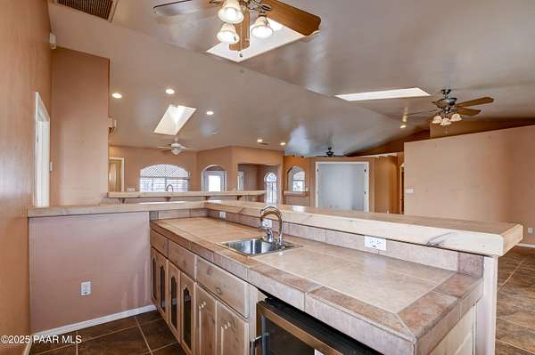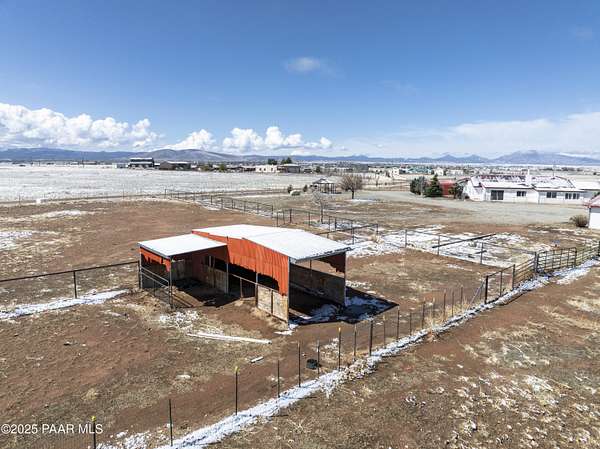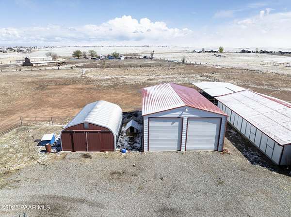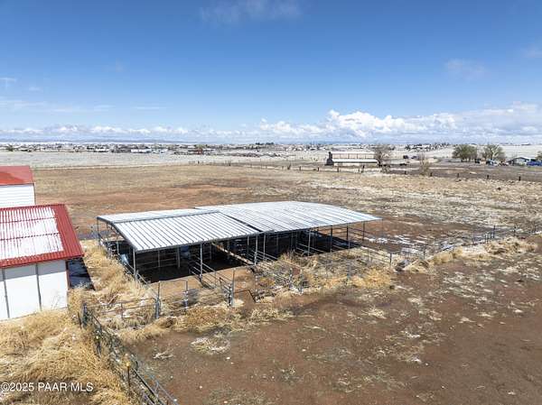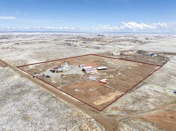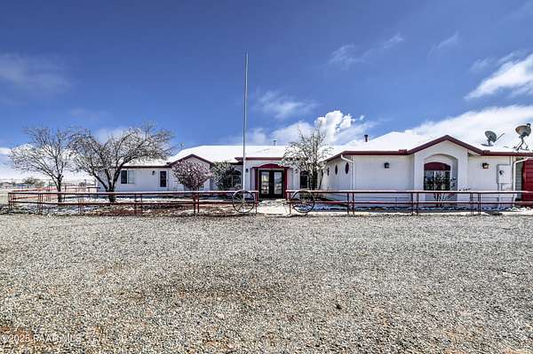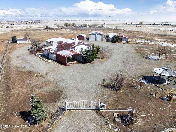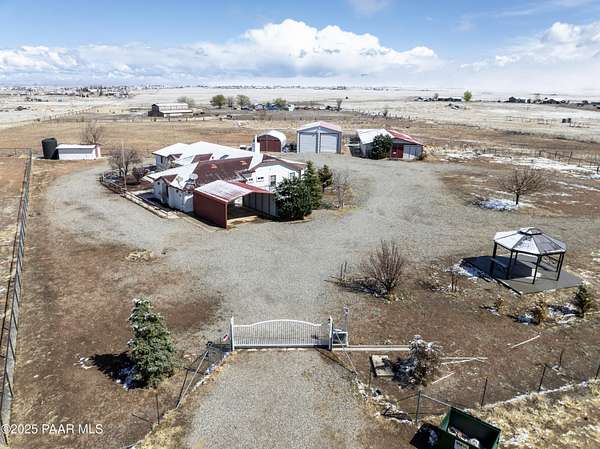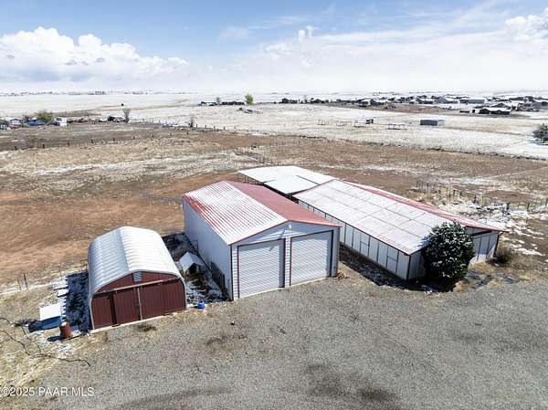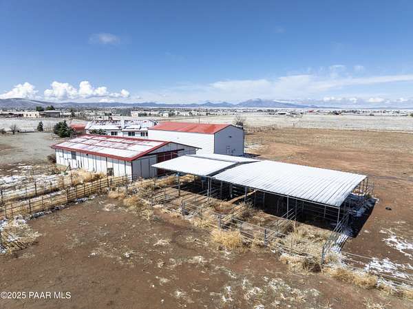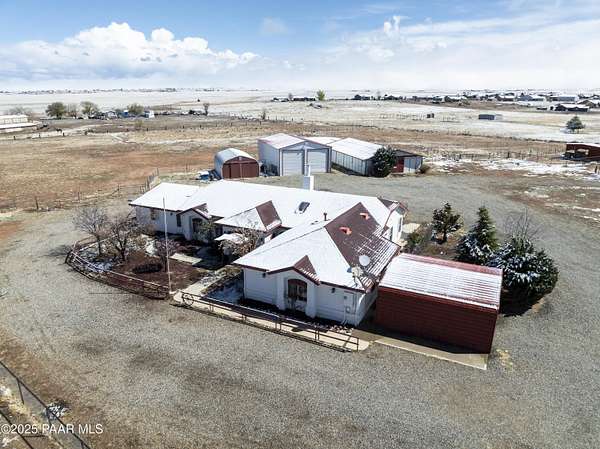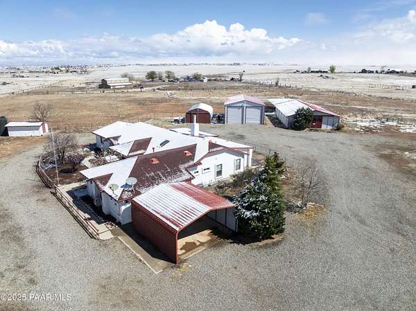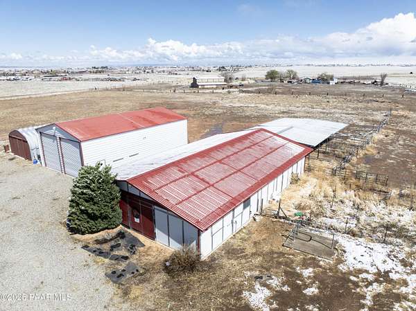 HUGE PRICE REDUCTION! Discover the perfect blend of comfort & functionality in this open concept 3,380 sq. ft. home located in Prescott Valley. Set on an expansive 9.45 acres, this property offers ample space for both relaxation & recreation. This beautifully designed home features 4 bedrooms, and 3 baths, providing plenty of room for family and guests. Built in 2004, the residence showcases high ceilings, incl vaulted ceilings and skylights that fill the living spaces w/ natural light. The property boasts a remarkable 1,500 sq. ft. utility bldg./garage, constructed in 2008, ideal for storage, a workshop, or additional projects. There is additional 600 sq ft building ideal for extra storage, work out room, etc. The 2232 sq ft barn is spacious & ready for your 4-legged family membe