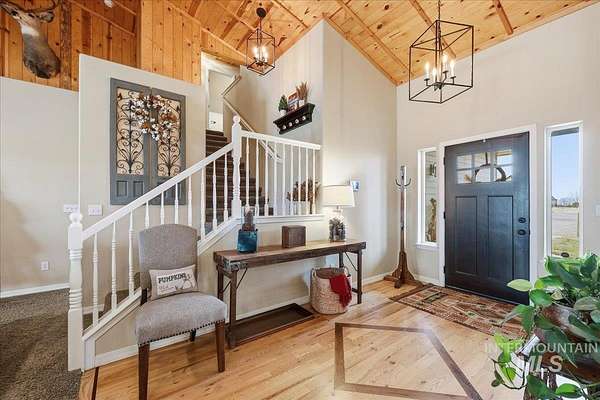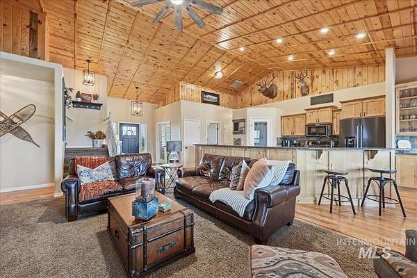This remarkable mountain view property has fun written all over it. Inside this 5 bedroom home includes a bonus room, game room with bar/kitchenette, private theater room, space for a home gym and an office. Outside enjoy incredible views and Endless entertainment with pool, hot tub, 2 firepits and an outdoor kitchen. Plenty of space for all of your recreational toys with an oversized dual RV bay garage in addition to a 40x50 heated shop. All of this on 10 acres backing up to BLM land. Live the Idaho dream in this beautiful home!