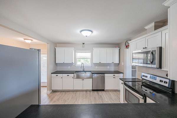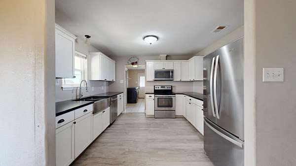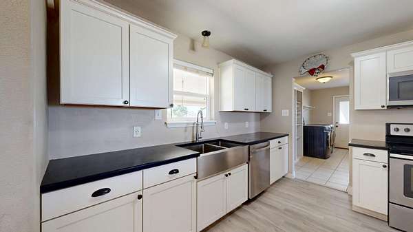 Est $2,239/moCharming and fully remodeled 3 bed, 2 bath home on 3.89 beautiful, fenced acres-perfect for horses and peaceful country living! Enjoy warm Pergo flooring throughout, custom cabinetry, and sleek new stainless steel appliances in an open, light-filled layout. Includes refrigerator, washer, and dryer. A new septic system, carport, and a spacious shop or two-car garage add convenience and flexibility. This move-in ready gem offers modern comfort with a relaxed rural lifestyle-come live the country dream!