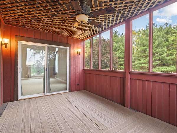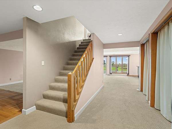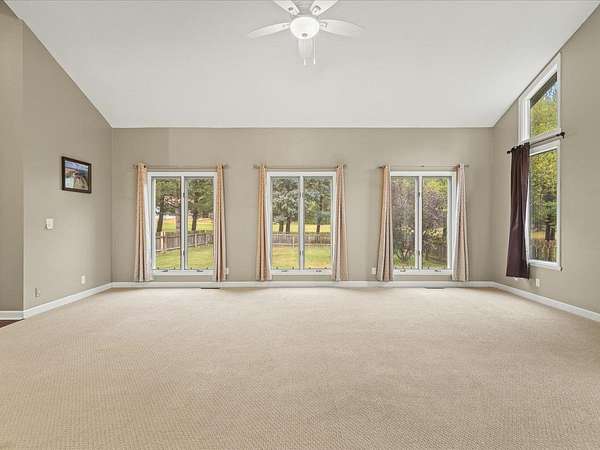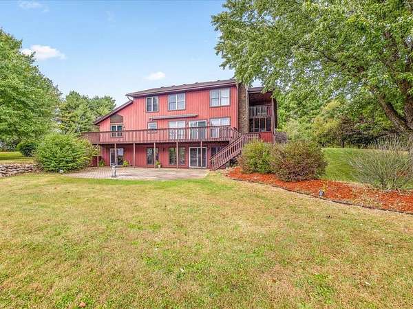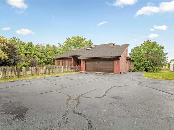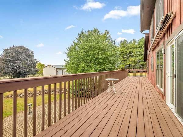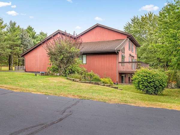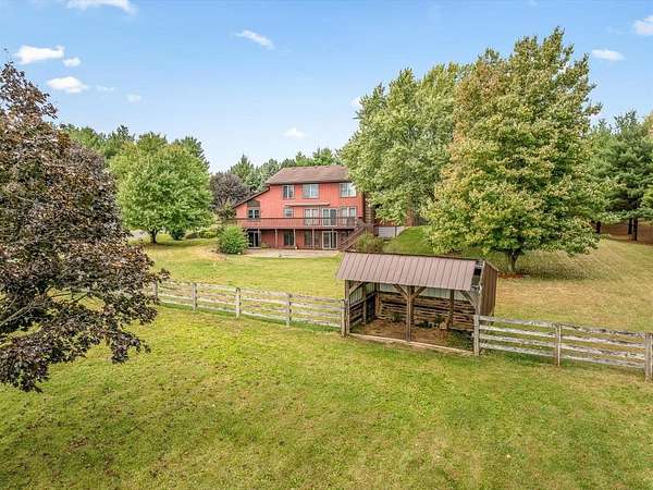 Presenting an exceptional 8+ acre estate zoned for agricultural use, ideally located in Stephenson County with low taxes and suited for livestock, hobby farming, or tranquil country living. This property features two substantial outbuildings. A 100x50 pole barn equipped with independent electric service, septic system, dual water lines, a half bath, and 5-6 mini horse stalls. A versatile 45x32 structure offering extensive storage for cars, boats, RV's, equipment housing, or workshop potential. The land is fully fenced, pasture ready, and enhanced by fruit trees, black walnuts, pines, and perennial landscaping. Enjoy evenings around the firepit with ample chopped wood provided. The custom home is over 5,000 sq ft and includes a main floor primary suite featuring triple closets and a recently remodeled ADA compliant luxury bathroom with vaulted ceilings. A spacious conveniently located laundry room adjoins the suite. The vaulted living area transitions seamlessly into the formal dining room and screened patio, while the kitchen is highlighted by a woodburning fireplace with blowers for heat, expansive windows, abundant cabinetry with pullouts, a large pantry, and direct access to the deck ideal for entertaining. On the upper level, there are three generous bedrooms, a full bathroom, and a loft with covered porch access. The finished walkout lower level offers a substantial rec/family room with fireplace with blower, wet bar, new sliding doors opening to a covered patio, and a dedicated hot tub room. Additional amenities include geothermal heating and cooling, an updated water softener, brick paved patio, and sweeping views of the picturesque grounds. The exterior has been freshly painted and is complemented by new recessed lighting, five upgraded patio sliders, and engineered wood floors replaced the wooded floors in 2018, and carpeting replaced in 2018.