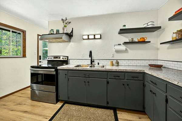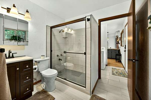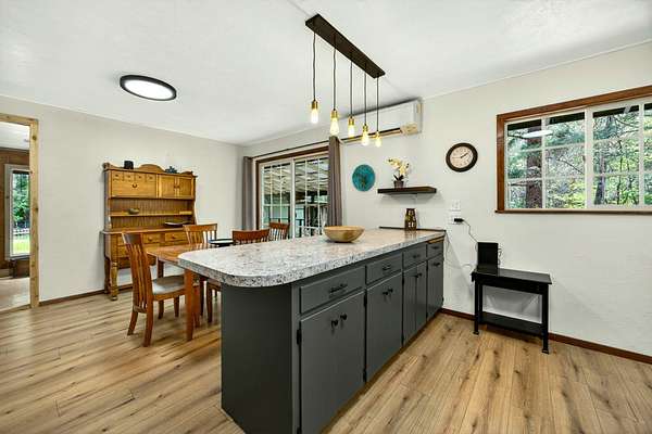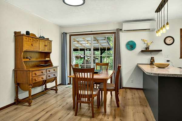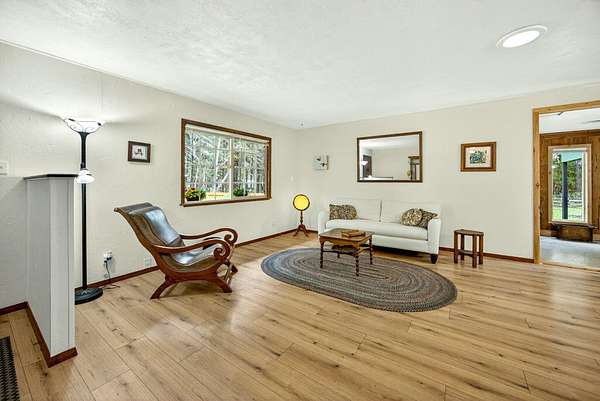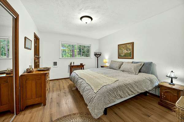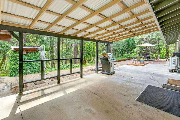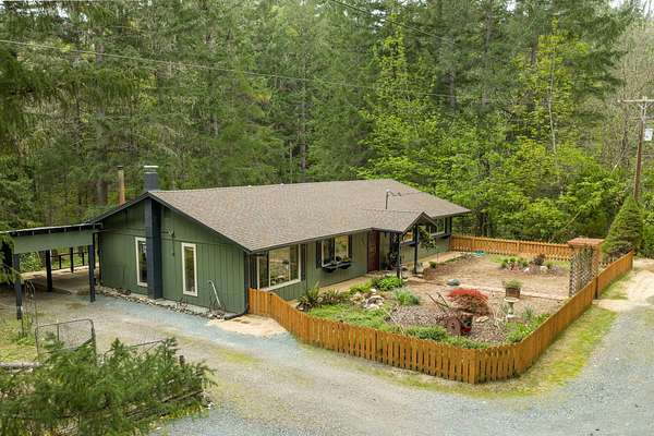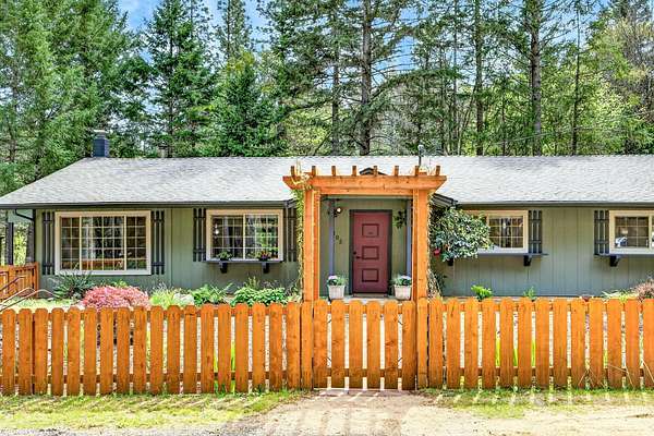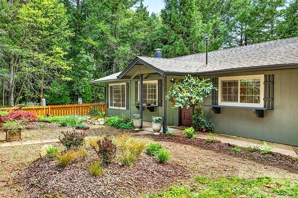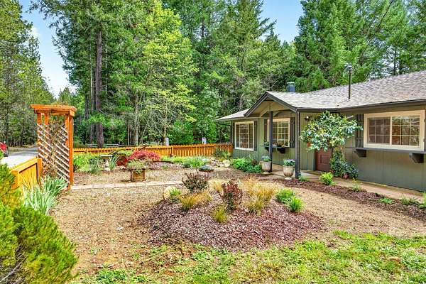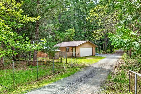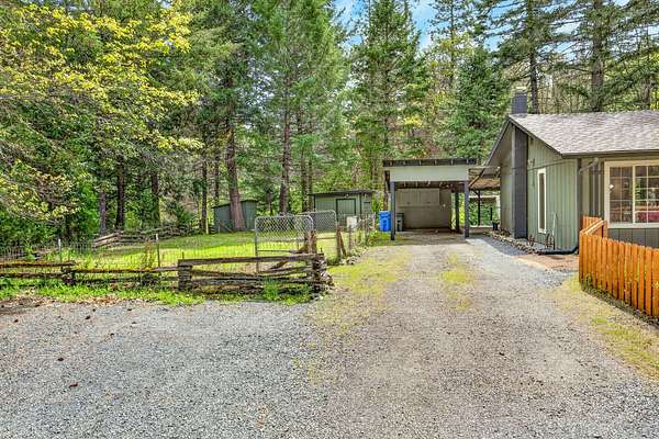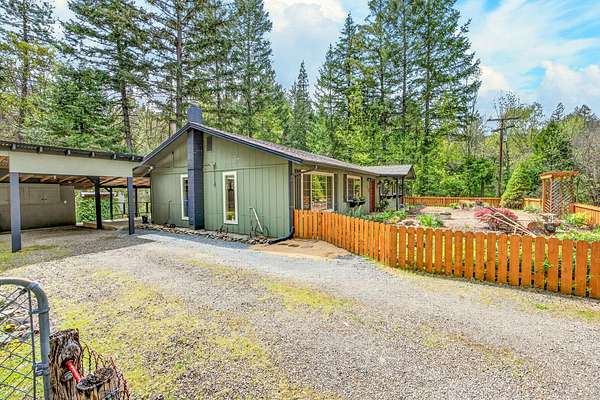 Tucked into a peaceful forest setting along a seasonal creek, this charming 1973 ranch house offers privacy, space, and connection to nature on 2.5 acres. Only 10 minutes from I-5 and the desirable town of Rogue River, the 3 bedroom 2 bath home features a comfortable living space and adjoining, spacious den with views of the surrounding trees and natural landscape. The updated kitchen, beautiful LVP flooring, newer roof, double-pane windows, and completely remodeled bathrooms make this home comfortable and move-in ready. Outside, unwind to the sights and sounds of the creek and meadow from the secluded, partially-covered patio or stroll the forest paths. The useful outbuildings include a spacious 672 sq ft garage/shop with RV parking, a mini-barn, and tool shed, providing excellent flexibility for hobbies, storage, or projects. Come enjoy this quiet, serene, and waiting-for-you property.
