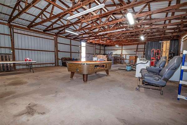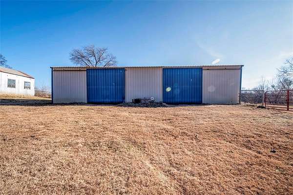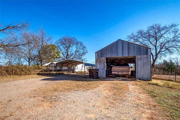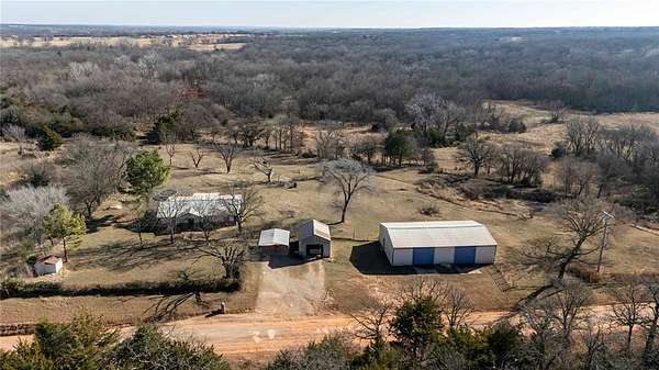 Est $1,677/mo3-bedroom, 2-bath home plus a flex room offering 1,152 sq ft of living space on 3.26 acres (MOL). The property is fully fenced and ready for livestock or animals, featuring a 60x40 shop with concrete floors and electric, plus a 36x23 pole barn for additional storage or equipment. Enjoy peace of mind with an on-site storm shelter and the beauty of a small seasonal pond. Conveniently located less than a mile from a paved road, providing privacy without sacrificing accessibility.