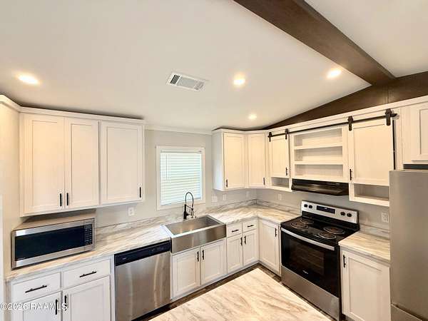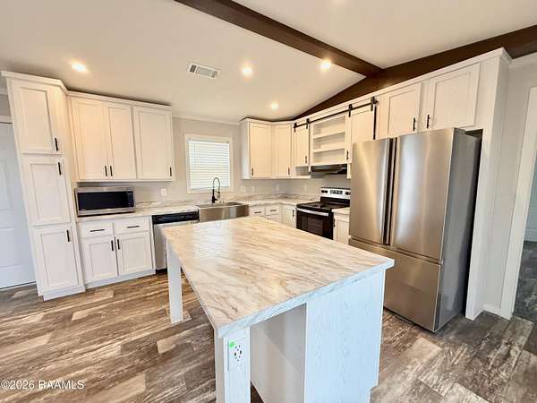 Charming Country Living on Over 2 Acres - Minutes from Lafayette & Maurice! Welcome home to this beautiful 3 bedroom, 2 bath farmhouse-style retreat, tucked away on a quiet dead-end road in the highly desirable North Vermilion school district. Enjoy peaceful country living with the convenience of town just minutes away. Step inside to a spacious, open-concept living room and kitchen - perfect for gathering and entertaining. The kitchen features all appliances, a large island, and abundant cabinet space for storage and prep. The oversized primary suite is a true escape, complete with a walk-in shower, relaxing soaker tub, and dual vanities. A split floor plan offers added privacy, with two additional bedrooms and a full bath on the opposite side of the home. Outside, you'll find plenty of room to spread out and enjoy the outdoors. The huge back deck is ideal for entertaining or relaxing evenings, and the property includes a full camper hookup with electric, water, and sewer connections. With its spacious layout, modern comforts, and generous acreage, this property offers the perfect blend of space, privacy, and convenience. Don't miss your chance to see it - schedule your private tour today!