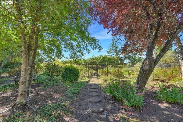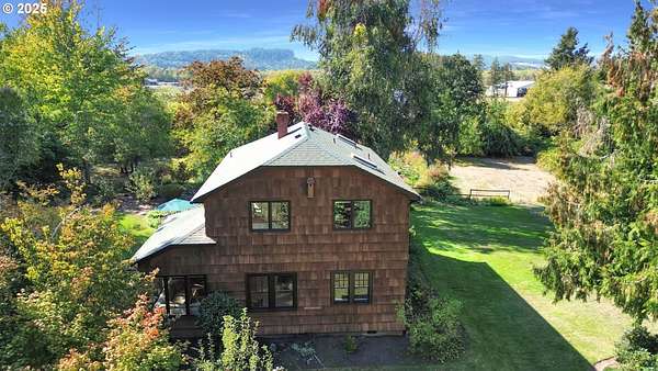 This nearly 4.5-acre property provides serenity and seclusion in a park like setting surrounded by farm land with no neighbors in sight. With 4 bedrooms 2 baths, formal dining, family and living rooms the 1840sq ft home offers generous size rooms all full of natural light and charm. The 1945 home was moved to this location in 1977 and rebuilt down to the studs. Over the years nearly every surface has been updated with timeless features, natural materials and a romantic quality. Two of the bedrooms are currently used as an art studio and an office. Most recent updates include 2023 Furnace and Heat Pump and an Electrical Panel, 2025 Sprinklers, 2024 Fridge, 2025 Cedar Siding Stained, 2022 Dish washer and Range. The property has established grapes, pears, figs and apples and established deer fenced garden with raised beds. Well flow 7.5 gallons per minute over 4 hours - water results are negative for arsenic, nitrate, coliform & e. coli. Low county taxes of $2,407.82 total for all 4 lots (are not in farm deferral)