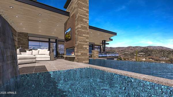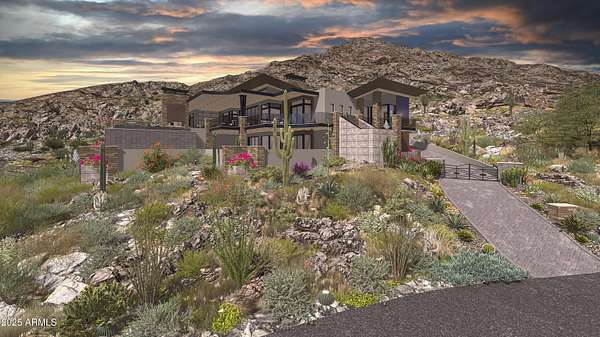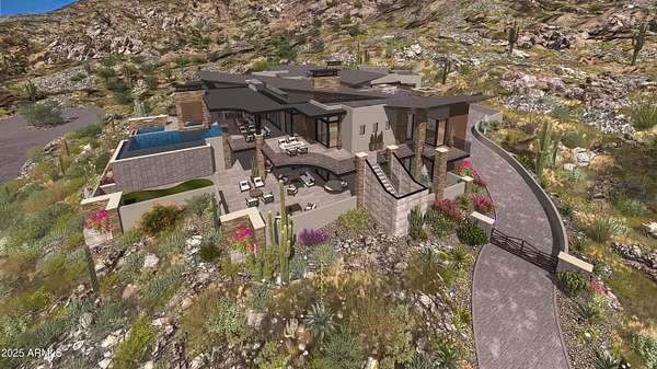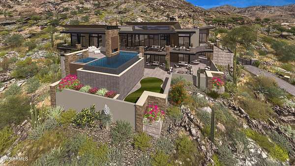 PRE CONSTRUCTION PRICE - FULL GOLF MEMBERSHIP AVAILABLE TO BUYER. The Continental Mountain is the backyard for this extraordinary Cintarosa home. The largest site in the neighborhood, this home itself will sit on a knoll dramatically above its point of entry allowing for expansive mountain and valley views. This sleek contemporary home is encapsulating modern luxury with the natural surrounding beauty of the Sonoran Desert and private 25 Acres. Nestled at the end of a winding road, perched into the hillside where the horizon paints an exquisite blend of colors during the sunrise and sunset. Featuring elements of stone, glass and wood this home will come together harmoniously to create an elegant symphony textures and forms. The heart of the home is a great room space with open kitchen featuring floor to ceiling windows that will capture the panoramic vistas, inviting the outside in. The patio spaces are an extension of the home's grace, boasting an infinity-edge pool and spa that will seemingly blended with the horizon. Enjoy the bar/bbq along with dining area for al fresco meals, and a fire pit where stories will be shared under the starlit skies. This floorplan allows for 100% single level living with main floor featuring split primary bedroom, two private guest en-suites, wine room, study and 5 car garage. Lower level encompasses a large game /bonus room and two private en-suites. Perfect for a couple or entertaining groups of family and friends this 7945 square foot 5 bedroom, 5 car garage home with a total of 14,320 square feet under roof is waiting for you. Automobile lifts can be added in garage for additional car storage. BUYER AND READY TO TRANSFER UPON APPROVAL FROM DESERT MOUNTAIN CLUB AND A SUCCESSFUL CLOSE OF LAND AND HOME BUILD CONTRACT