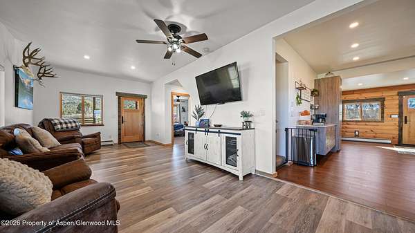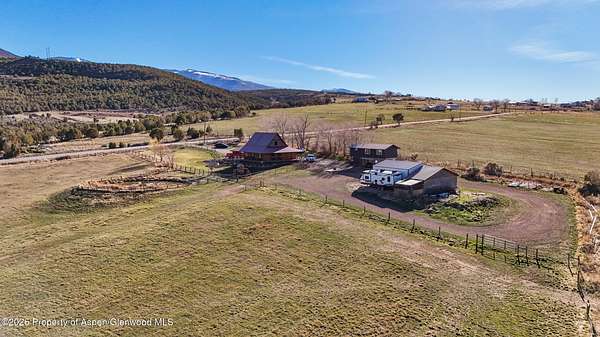 Rustic charm meets modern comfort on this stunning acreage property! Featuring a beautiful log exterior with an oversized porch, this home has been fully remodeled on the inside with a fresh, modern feel. Situated on over 13 fully fenced acres, the property includes a pond with irrigation rights, two spacious shops, and absolutely breathtaking views in every direction. Bring your toys, your animals, and your love for the outdoors--this property is set up for it all. Enjoy peaceful mornings and evenings watching elk and deer right from your deck, and entertain with ease in the perfect country BBQ setting. This is country living at its finest, all while being just a quick 7-minute drive to I-70 for convenience.