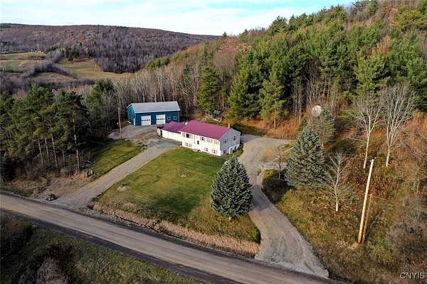 This 32 acre property includes a raised ranch home, garage, shop and a stocked pond located in Hornell NY, Steuben County. Situated along a quiet gravel road, this well-maintained home sits back off the road overlooking a spring-fed pond and is surrounded by woodlands for exceptional privacy. A circular driveway wraps around the home providing easy access to the main entrance, attached garage, and back patio. Step inside to find charming hardwood floors that extend throughout the main level and a comfortable open dining and living area ideal for gatherings. The efficient kitchen offers ample counter space and cabinetry on three sides. The main floor includes three nice sized bedrooms and a full bathroom. There are three newer heating and cooling units throughout the home. The finished lower level adds valuable living space featuring a large family room with a beautiful brick fireplace, tile flooring, and a wet bar, perfect for entertaining. This level also includes a convenient fourth bedroom, a full bathroom, and a separate laundry area. Beyond the laundry room, a bonus room with tongue-and-groove finishes, a wood stove hookup, and its own exterior entrance provides a flexible space for a rec room, hobby area, or additional gathering space and leads directly into the attached garage. Just off the home is a 45 x 28 pole barn with concrete floors and two overhead doors offering excellent storage and workshop potential. Enjoy peaceful country living in the Canisteo-Greenwood School District with high-speed internet. The 32-acre property provides ultimate seclusion with land on both sides of the road and more than 3,000 feet of road frontage. A newer pavilion overlooks the spring-fed pond which is stocked with bass and bluegill. The land consists primarily of timberland and brush with a small field across from the home offering excellent wildlife habitat and quality hunting opportunities in an area known for abundant deer. Listing Broker is related to the owner of the property. Delayed showings begin December 29, 2025 at 8:00 am. Delayed Negotiations January 5, 2026 at 12:00 pm.