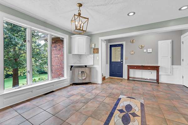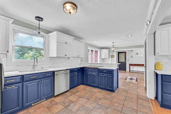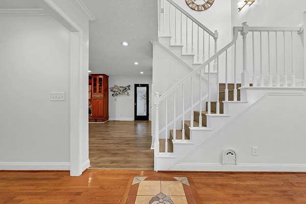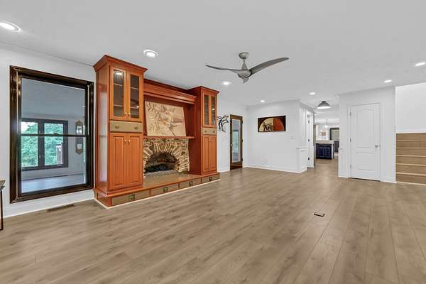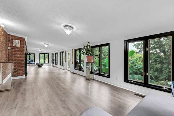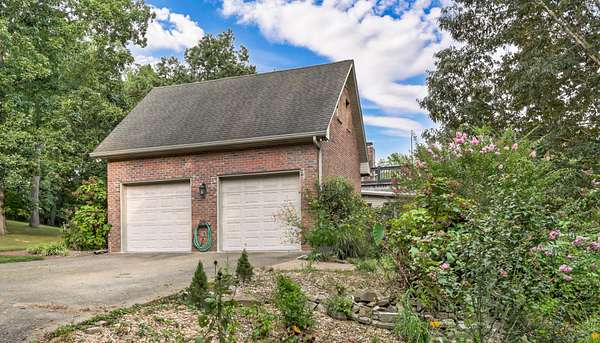 Discover a rare gem nestled on nearly 4 acres - where tranquility meets modern luxury. This meticulously renovated 5 bedroom, 4 bathroom estate blends privacy, functionality and charm. Surrounded by lush landscaping, mature trees and a serene Koi pond, the property captivates with stunning balcony views--perfect for morning coffee or evening sunsets. A thriving fruit orchard with pear, apple, peach, plum and cherry trees (some yielding fruit, others maturing) pairs with a vegetable garden featuring drip irrigation, inviting sustainable living. Wildlife flourishes, with daily deer sightings, seasonal turkeys, foxes, playful squirrels, vibrant butterflies and hummingbirds dancing through the grounds. Inside, the home unfolds like a storybook, revealing unique nooks and surprise spaces for relaxation, play or creative pursuits. A light-filled sunroom bathes the interior in warmth, while the fully renovated, enlarged kitchen boasts modern elegance. The finished basement, complete with a full bathroom and laundry, offers versatile space for multi-generational living, guest quarters or a private retreat. Car enthusiasts and hobbyists will love the garage space for up to 6 vehicles, including a detached 3-car garage with a Tesla Wall Charger, an attached 2-car garage and a 1-bay garage in the basement--ideal for a workshop or prized car collection. With close proximity to Clarksville's shopping, dining and entertainment, this move-in ready home, with every room thoughtfully renovated, is more than a property--it's an invitation to live intentionally, surrounded by nature's beauty and modern comforts.