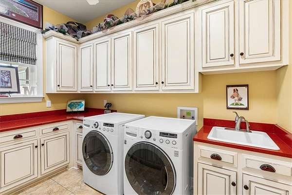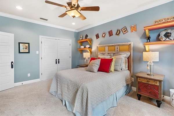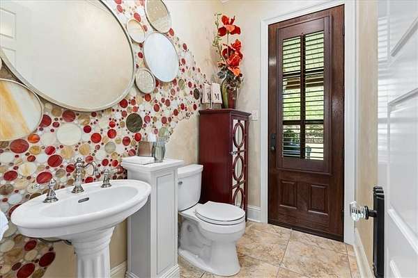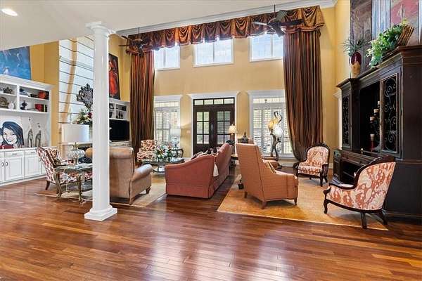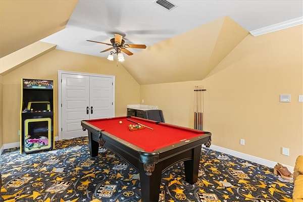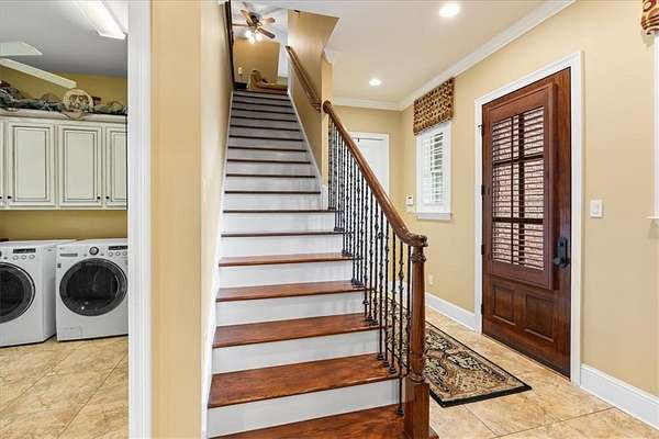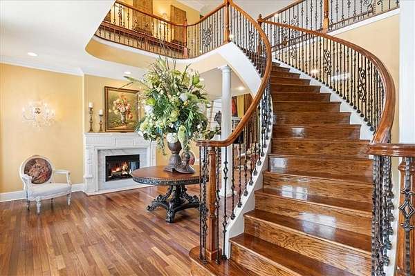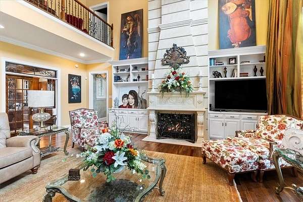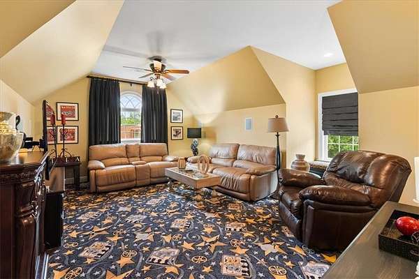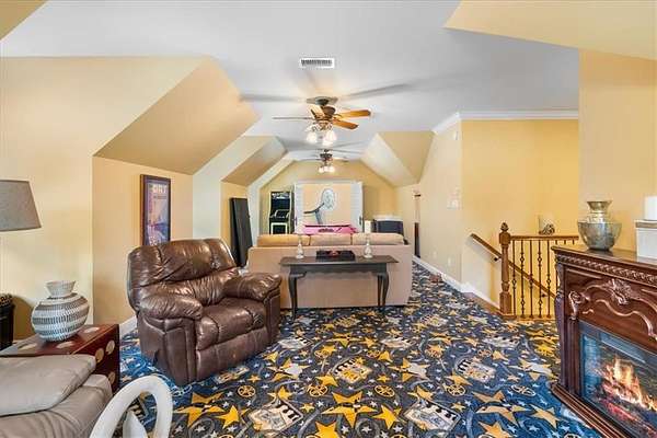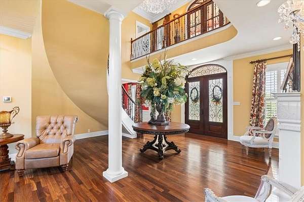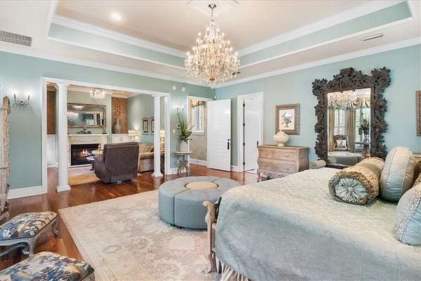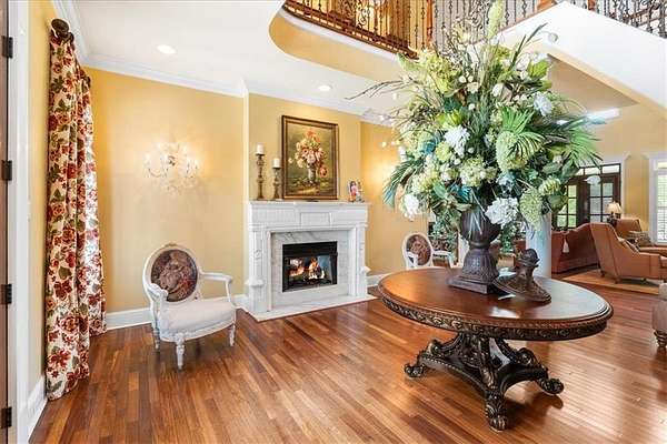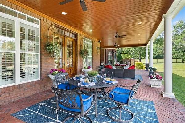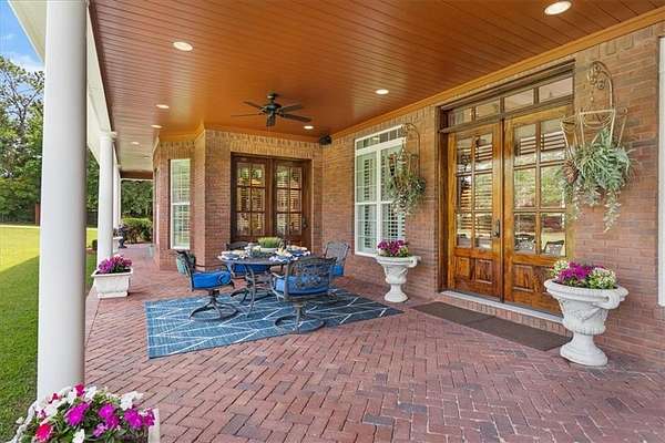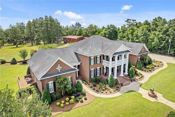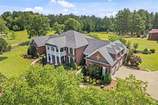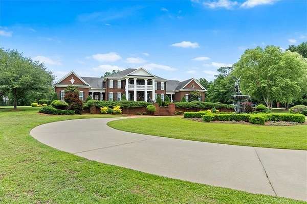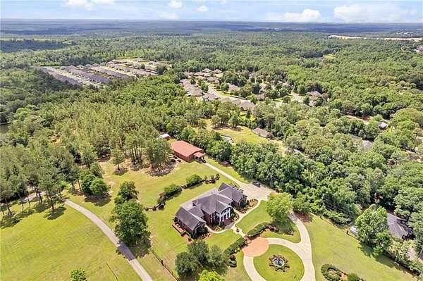 The Largest Home in Saraland: A Private Estate of Unmatched Luxury. Welcome to a rare opportunity to own Saraland's largest and most exquisite estate, 6261+/-Sq ft of living space, (approx. 8791+/- Sq. ft. under roof) set on 6 +/- serene acres of meticulously landscaped grounds. From the moment you enter the private gate and wind down the tree-lined driveway, this custom-built masterpiece will offer you a sense of peace and privacy. As you arrive, you're welcomed by expansive parking and the sounds of water flowing from the custom fountain. Step inside to soaring ceilings adorned with custom crystal chandeliers, a striking curved staircase, and a warm, inviting fireplace that anchors the grand foyer. Solid wood floors flow throughout, leading to a generous living area designed for effortless entertaining. The center of the home is a dream kitchen, featuring top-of-the-line Wolf appliances, a Sub-Zero refrigerator, endless custom cabinetry, and an oversized layout perfect for hosting or enjoying everyday luxury. Retreat to the impressive primary wing, approximately 1,200 square feet. Here, you will find a tranquil sitting area with a private fireplace, double doors opening to the lush backyard, and a custom-designed closet that is as functional as it is beautiful. Upstairs, three spacious bedrooms each offer en-suite baths, while a large game room and fully equipped workout space provide plenty of room to relax, play, or train. Every inch of the home has been thoughtfully curated with high-end finishes and designer touches. Step outside to an expansive covered back porch with an outdoor kitchen, overlooking your private oasis. The backyard is a showpiece, including a 51' x 80' detached garage/workshop with an attached 17' x 19' carport, ideal for car enthusiasts, hobbyists, or extra storage. This extraordinary estate offers luxury, privacy, and space beyond compare. Truly a one-of-a-kind home for those seeking the best of Saraland living.