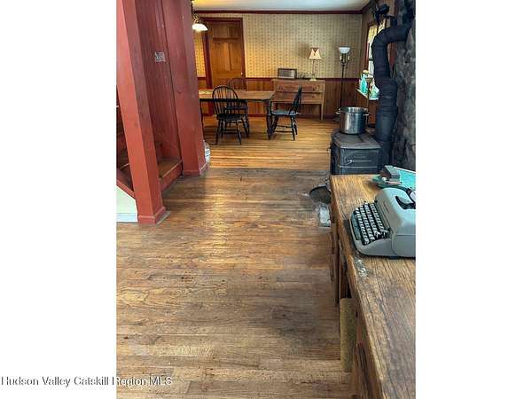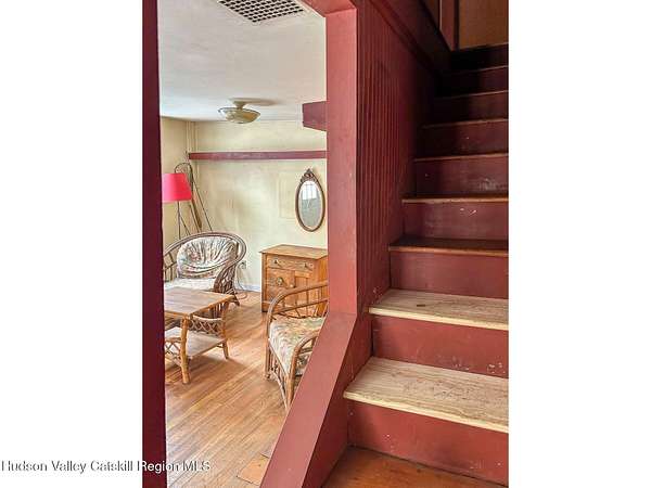 Step back in time at Bird Song Farmhouse, a picture-perfect 1900s homestead where heritage meets modern resilience. Tucked away in a serene natural hollow on 1.5 acres, this property offers the ultimate escape into country living. Fall asleep to the gentle melody of a babbling creek. This home masterfully balances original character with high-value structural improvements. The classic silhouette is now crowned by a brand-new metal roof designed for longevity. Inside, you'll enjoy country views through new, energy-efficient replacement windows that flood every room with soft, natural light. The interior is brimming with soulful details and architectural charm: original woodwork, whimsical built-in nooks, and authentic stained-glass light fixtures. A ''primitive-style'' kitchen offers a rustic, hearth-like aesthetic; perfect for those who cherish a slower pace of life. Gather around the wood stove, anchored by a beautiful floor-to-ceiling fieldstone backdrop. Three spacious upper-level bedrooms offer quiet sanctuary with views of the surrounding landscape. Two full bathrooms (one on each level) provide a convenient footprint ready for your custom finishing touches. The grounds & the barn: the exterior is just as captivating as the home itself. The property sits within a unique microclimate created by the natural hollow, offering a lush and sheltered setting. The barn is a rare find. This fully electrified structure has been refreshed with a new metal roof and paint to match the farmhouse. Whether you envision a professional workshop, an artist's studio, or the ultimate ''party barn'' for summer gatherings, the possibilities are endless. A sizable crescent-shaped driveway provides easy access, while the gentle banks of the creek invite afternoon picnics and quiet reflection from your porch swing. An opportunity awaits: offered as an estate sale and priced to sell, Bird Song Farmhouse presents a rare chance to own a piece of history. Bring your vision to the final cosmetic updates and claim your place in the country.