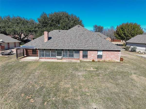This one-owner 3-2-2 brick home sits on 1.8 acres of land that gently roll down to the Brazos River--a view you'll never get tired of. Built in 1993 as a custom home, it has the solid craftsmanship you just don't see every day, and it's ready for your creativity to bring it forward into a fresh, modern era. Step inside and you'll find a cozy living room with a fireplace calling for winter evenings, a cheerful sunroom that feels like a bonus slice of year-round vacation, and a kitchen with plenty of space to re-design into your dream setup. The bedrooms are spacious, storage is abundant, and the layout has great flow for both quiet days and gatherings. Outside, a circle drive welcomes you home, the land offers space to roam, and deer who treat the property like their private retreat. And speaking of the neighborhood--the amenities are practically a resort list: multiple parks, RV sites, equestrian facilities, tennis and pickleball, golf courses, airstrips, a marina, swimming pools, trails, and more. All this inside a gated, guarded community that feels tucked away yet full of possibilities.