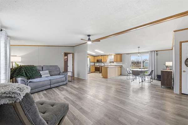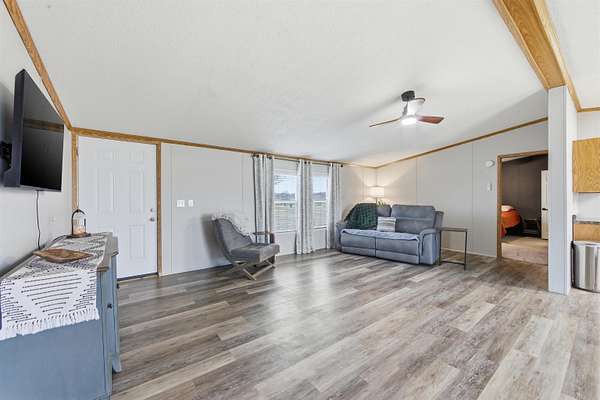 Enjoy country living on this 3.1-acre property just 10 minutes east of Augusta, perfectly situated for horses or other livestock! This 4-bedroom, 2-bath home offers 1,620 sq ft of comfortable living space along with several updates. The bathrooms have been fully remodeled, while the roof and siding were replaced in 2019 and new gutters were added in 2026, giving peace of mind for years to come. Outside, the property is set up with functionality in mind. An oversized 24x24 two-car garage provides plenty of room for vehicles, tools, and projects, complete with a large workbench. Also, in the garage you will find a storm shelter laid into the garage floor. Two 16x10 storage sheds will remain with the property, offering additional space for equipment, tack, or hobbies. Plenty of room in the driveway for an RV or extra vehicles. Horse lovers will appreciate the three horse stalls and three separately fenced pastures, which can easily be opened to one another for flexible grazing and rotation. Whether you're looking for a hobby farm, horse property, or simply a place to spread out and enjoy the outdoors, this property offers the perfect blend of updated living space and usable acreage.