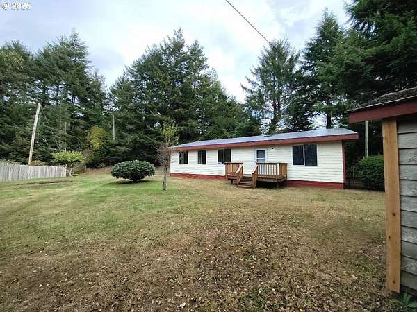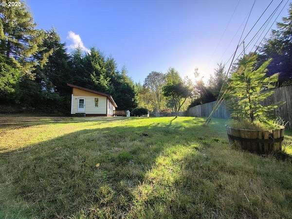 Bring your ideas! This beautiful property is ready to go. Situated on a private 100x100 lot with a secure gate, it features attractive landscaping and plenty of space for your RV, boat, or recreational toys-all while offering both privacy and convenience. Power, water, and sewer are already on-site, with a new electrical hookup and circuit breaker box recently installed. The spacious 900 sq. ft. great room, built in 1996, is ready to be converted into a comfortable home. The property is partially fenced, with plans for additional fencing to be completed soon, and it also includes a garden shed, garden tools, and a lawn mower. Conveniently located across from the bay and near several state parks, the stunning Oregon Coast, beaches, and sand dunes, this property is also just 25 minutes from the world-renowned Bandon Dunes Golf Resort.