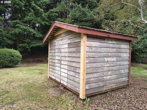Bring your vision to life! This beautiful, ready-to-go property offers the perfect blend of privacy, convenience, and coastal living. Nestled on a private, gated 100x100 lot, the property features attractive landscaping and ample space for your RV, boat, or recreational toys.All utilities are already in place, including power, water, and sewer, with a new electrical hookup and recently installed electrical panel. The spacious great room and bedroom, built in 1996, provide an excellent foundation to convert into a comfortable home. Large 27x60 windows are already on site for a future addition, allowing you to expand and customize to your needs.The property is partially fenced, with plans for additional fencing to be completed soon, and includes a garden shed and lawn mower for easy maintenance. Ideally located across the street from the bay and close to several state parks, the stunning Oregon Coast, beaches, and sand dunes, this property is also just 25 minutes from the world-renowned Bandon Dunes Golf Resort.A rare opportunity to create your own coastal retreat, don't miss it! Buyers to conduct their own due diligence regarding property use, permits, and development potential.