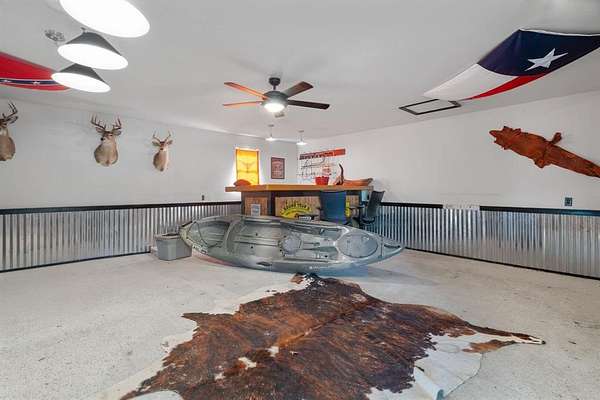 The property includes a 2-car garage with a fenced driveway for added privacy, plus a barn with horse stables ready for your livestock. An additional building offers a versatile game room or man cave--perfect for entertaining or relaxing. Outside, enjoy peaceful afternoons by the pond and wide-open space suited for horses, cattle, or gardening.