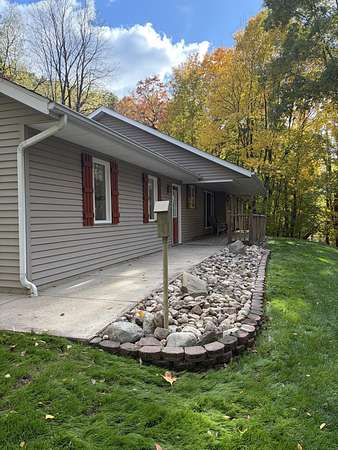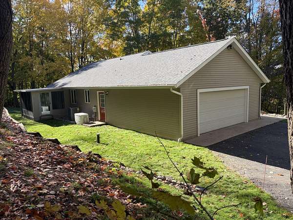 Beautifully remodeled walkout 3 bedroom ranch in Cooper Twp! Set atop serene, wooded hill on nearly Two acres this spacious home offers a perfect blend comfort & style in the Plainwell School District. The open floor plan features: vaulted ceilings, new flooring, freshly painted & granite countertops in kitchen. Enjoy the warmth of a brick gas fireplace in living room or step through French doors 10 x 14 three-season porch. Main level includes: 2 skylights, convenient laundry w/1/2 bath, Cherry cabinets Kitchen ,a luxurious primary suite/walk-in closet & handicapped -accessible shower. Finished walkout lower level adds 2 additional bedrooms, full bath, family room & abundant storage. Outside you'll appreciate a covered deck, asphalt driveway, 25 x 26 attached garage & plenty of wildlife to enjoy. Additional amenities include natural gas, water softener, gutter guards, Generac generator, egress window, all kitchen appliances plus washer & dryer. Move in ready & waiting for you !