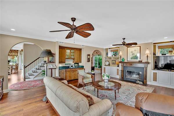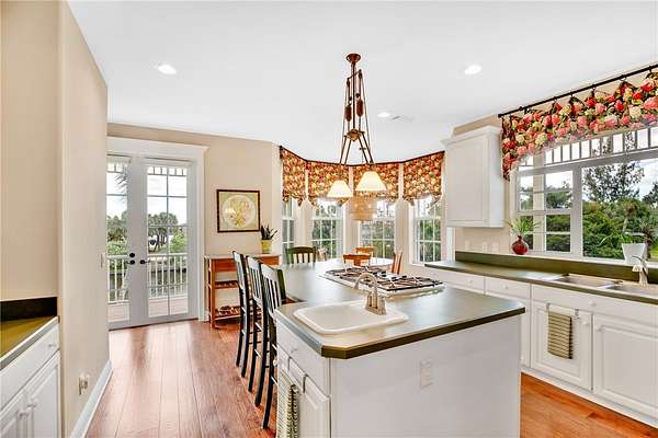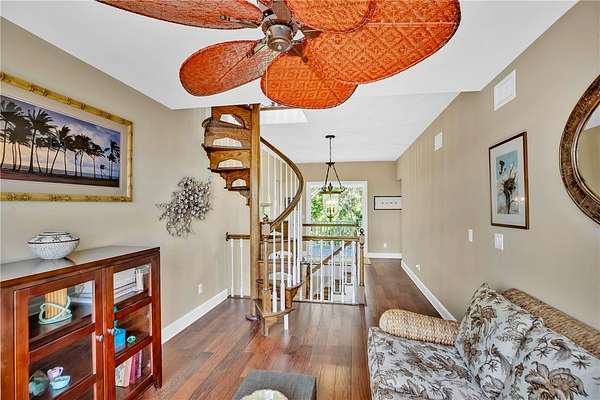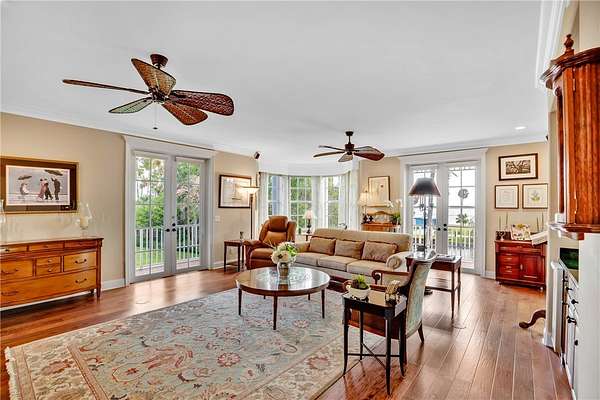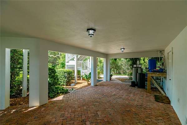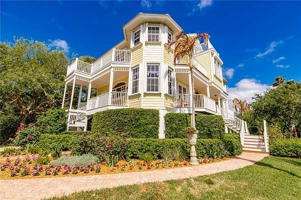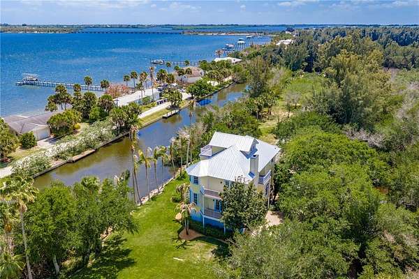 Secluded 6-acre canal-front peninsula estate! A private, oak-lined drive leads to this spacious 3 bed, 2.5 bath, 4-story residence, offering balconies off every room, and a top-floor office with panoramic river views. Interior features include wood floors, a fireplace, upstairs living area, wet bar, and island kitchen with gas cooktop. The outdoor space is complete with a 3-car garage, 2026 metal roof, accordion shutters, lush landscaping, gazebo, circular paver drive, and navigable canal access to the river, a blend of privacy, space, and exceptional waterfront living. rmszaprx&sub2er