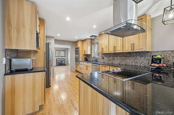 - Built-In Refrigerator, Dishwasher, Disposal, Double Oven, Dryer, Electric Cooktop, Exhaust Fan, Stainless Steel Appliance(s)