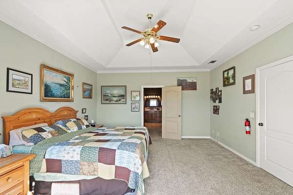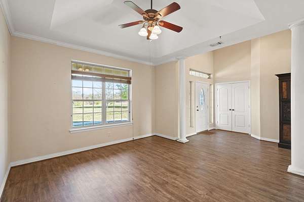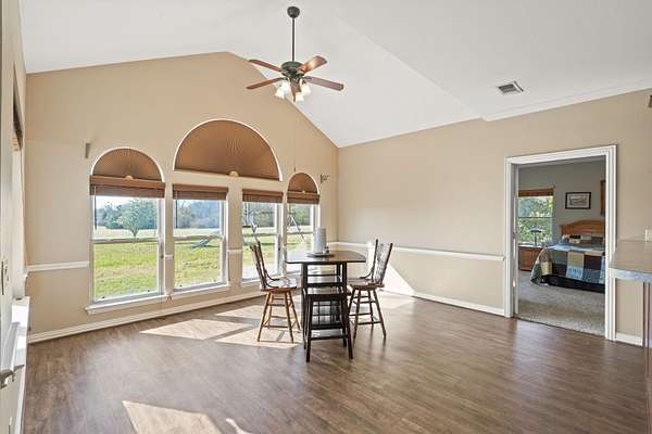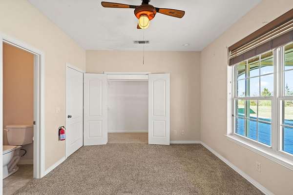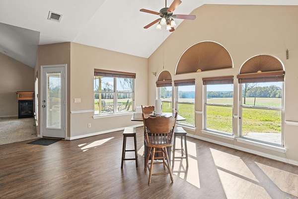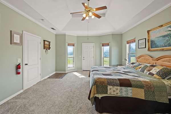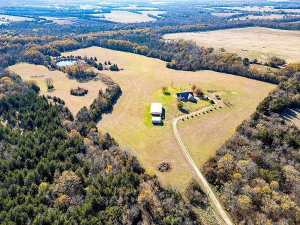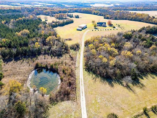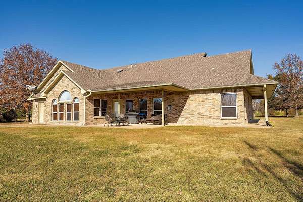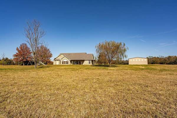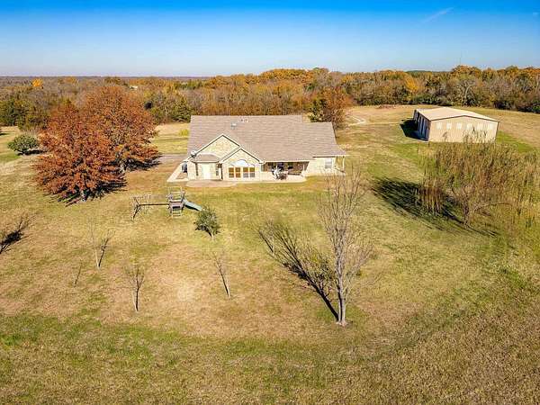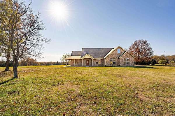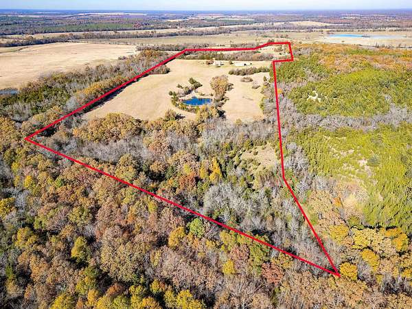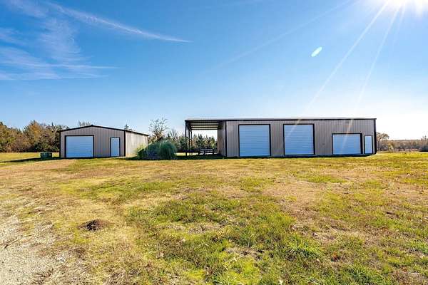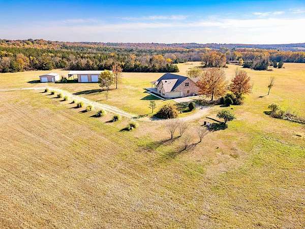 Attention all wildlife enthusiasts! The perfect hunter's dream awaits with an abundance of nature and wildlife. This beautiful 5-bedroom, 3.5-bath brick home is nestled on over 65+ acres. It features a large kitchen with an island and custom cabinets, a walk-in pantry, a dining area, and a separate formal dining room. The home is equipped with a gas stove and an on-demand water heater, serviced by a 1000-gallon in-ground propane tank. The spacious master bedroom and bath offer outside access, separate large walk-in closets, two separate vanities, a large walk-in shower, and a Maax jetted tub. Two bedrooms share a Jack and Jill bathroom. Ascend the beautiful staircase to discover two very large bedrooms, a huge storage area with a full bathroom, and a potential game room with an extra sitting area. The home includes two dining areas or a possible office space. An attached oversized 2-car garage with a personnel door adds convenience. Security is provided by a wired entry alarm system with Camera system. The house is set back from the road, offering seclusion and privacy, with three ponds and cross-fencing. A separate building site with water and electric is available at the front of the property for additional builds. Deer blinds are included on this prime hunting property teeming with wildlife. The land is a blend of pasture and hardwoods, adjoining the Northeast Texas trail to the south. A 40x60 shop with 3 remote openers and a 20x30 shop are on-site. Enjoy the covered back porch with views and sounds of nature and plentiful wildlife. Come and let your cattle roam or hunt-This property is a "DREAM"...Call today for your private tour of this one of a kind!!