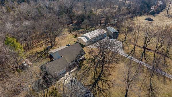 Custom-built walkout basement home on 10 beautiful acres with a live spring fed creek right within view of the sunroom or the functioning hot tub!, Inside this 3 bed, 3 bath open floor plan home you'll find engineered hardwood throughout, LVP in the basement and sun room, custom kitchen cabinetry, granite countertops, updated appliances, laundry chute, and a spacious primary suite featuring a cedar-lined closet and frameless glass shower. A sunroom addition and deck (2021), new windows (2022), updated HVAC (2017), and numerous improvements throughout provide peace of mind. The Outdoor Hardy wood furnace can heat both the home and water heater or just switch to propane, and a generator hookup adds additional security. The home and shop are not located in a floodplain and do not require insurance coverage, and a spring-fed creek runs through the property. Additional perks include a hot tub, garage refrigerator, basement entertainment center, gutter guards, and a ready-made garden area protected with chain-link fencingFor hobbyists, entrepreneurs, or those needing a serious workspace, the shop is 30 x 80' with 3 separate sections connected by interior doors, 1st Section- a finished 15' x 30' insulated flex room with 220 power, water heater, waterproof walls, and a rear access garage door. Then two additional large shop sections featuring 12' sidewalls, x4 oversized bay doors, a wood stove, a frost-free spigot, LED lighting, and ample storage. The 18' x 40' RV barn includes 30-amp service and ceiling outlets. A 75-yard shooting lane sits behind the home and has never failed in getting that deer! Directly across the road you'll enjoy 320 acres of Dale Sare Conservation Area -- offering unmatched privacy and recreation right outside your door. Too many features to put all in one description!