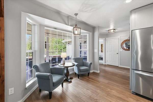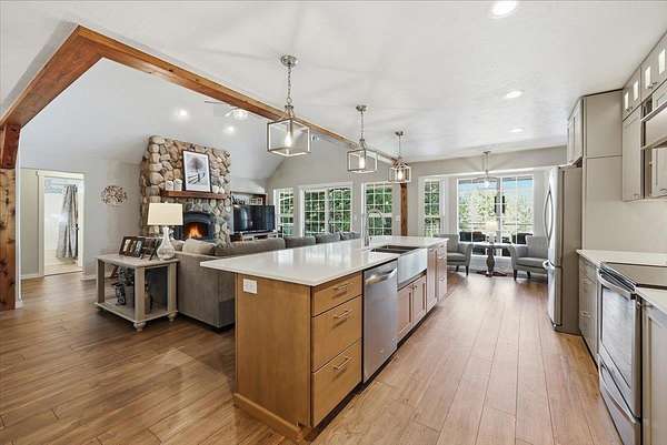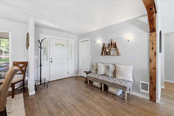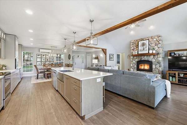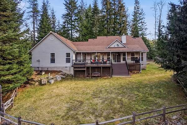 Welcome home to this beautifully updated 4-bedroom, 3-bath home with a spacious bonus room ideal for an additional bedroom, office, or family room. This gorgeous open-concept home features vaulted ceilings and a spectacular newly designed kitchen with quartz counters, custom cabinetry, a large island, stainless appliances and a coffee/beverage bar. The inviting living room showcases a stunning rock mantle with a cozy wood-burning fireplace, while large windows fill the home with natural light that highlights the beautiful flooring throughout. Main-level living includes a primary suite and laundry for convenience. Step outside to a huge deck with hot tub, perfect for relaxing and taking in the mountain views. A massive 1,140 sq ft covered storage with 15X20 lean-to provides ample space for all your toys. Set on 10 private treed acres filled with a variety of wildllife! Just 45 minutes from Spokane and close to ski mountains, lakes, rivers, golf, a casino, and endless outdoor recreation-come live the dream!