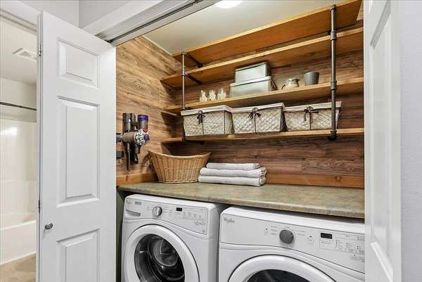 - Dishwasher, Dryer, Free-Standing Range, Hard Surface Counters, Microwave, Refrigerator, Washer