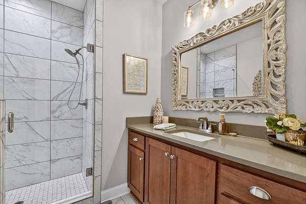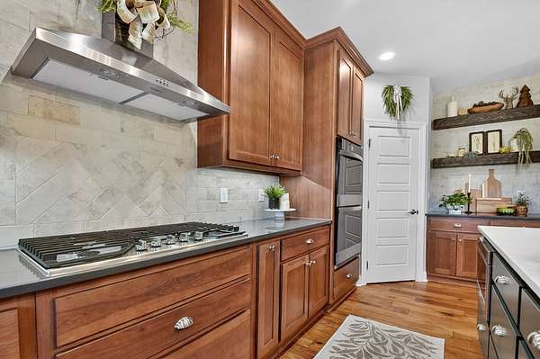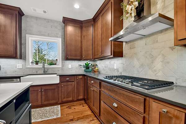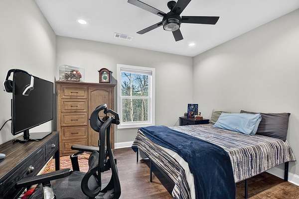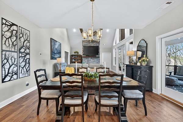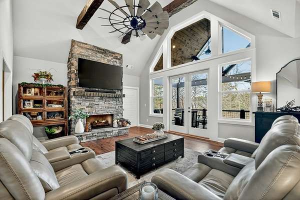 Welcome to Rivers Edge...an inviting gated community with private access to the beautiful Cartecay River. This newly constructed Craftsman-style 4 bedroom, 4 bath home offers timeless design, thoughtful layout, and effortless mountain living with custom details throughout. Beautiful landscaping and a concrete driveway create standout curb appeal, while all paved access ensures convenience year-round. A spacious garage adds everyday practicality. Inside, you'll love the open-concept design that brings together the chef's kitchen and great room with soaring ceilings & plentiful glass for easy entertaining and comfortable living. The main level features two spacious bedrooms, including the primary suite with spa like bath, providing convenient one-level living along with home office & mudroom. Downstairs, the finished terrace level offers two additional guest rooms & baths, a large den/rec room, & a phenomenal theater room—perfect for movie nights, game days, or hosting guests in style. Enjoy subtle long-range mountain views from the living room windows or while relaxing on the large back porch. In the winter months, you can catch glimpses of the river from the home, and year-round you'll appreciate the peaceful sound of rushing water in the background—an everyday reminder of the serene setting. Whether you're looking for a full-time residence or a mountain getaway, this home delivers quality construction, smart design, and access to one of the area's most desirable river communities.