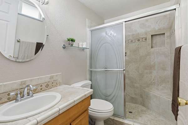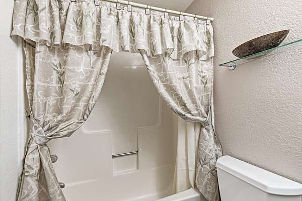 - Breakfast Bar, Ceiling Fan(s), Fiberglass Stall Shower, Linen Closet, Open Floorplan, Shower/Tub Combo, Tile Counters, Tile Shower