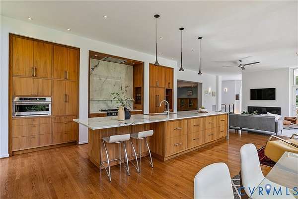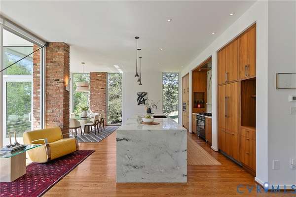 Set along the prestigious River Road corridor just across from the Country Club of Virginia - this exceptional private home masterfully blends architectural charm with sophisticated modern design. This rare offering also includes a separate, buildable, 1-acre parcel at 914 S. Gaskins Road-creating a unique opportunity for expansion, investment, or the creation of a multi-generational compound. A long, park-like approach introduces the home with sweeping lawns and a pond fed by a natural spring, setting a tone of tranquility that feels worlds away. This home was thoughtfully expanded with a striking contemporary addition designed by Ensminger Architects and expertly built by Dunkum Builders. Every inch of the home has been meticulously renovated with expert craftsmanship and elevated finishes, resulting in over 6,300 square feet of beautifully curated living space. Expansive floor-to-ceiling windows flood the interiors with natural light and frame breathtaking views of the surrounding grounds while seamlessly connecting indoor and outdoor living to the multiple terraces. The main level offers effortless open concept one-floor living, anchored by a stunning new chef's kitchen featuring Martin-Star custom cabinetry and professional appliances. The main level also includes a luxurious primary suite with a spa-like bath, a private guest suite, and a library with a fireplace, creating comfortable living spaces. Upstairs, two additional bedrooms and a full bath provide ideal space for family or guests, while the finished lower level expands the home's versatility with a spacious recreation room, wine room, full bath, private office or potential fifth bedroom, abundant storage and a 2 car attached garage. Perfectly positioned w/quick access to the James River, the lifestyle here is unmatched. Impeccably maintained with significant system updates, this extraordinary property represents a seamless blend of historic character and modern luxury. Hop on your golf cart to enjoy dinner at Talley.