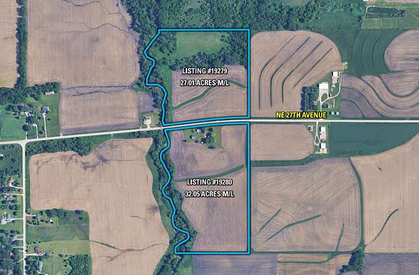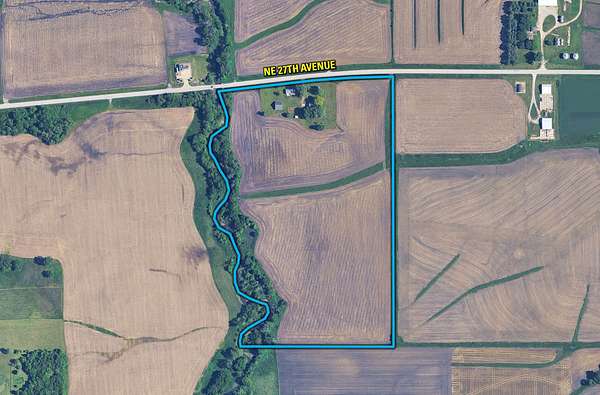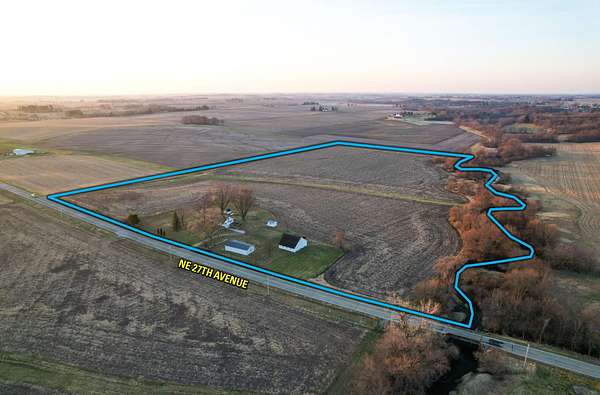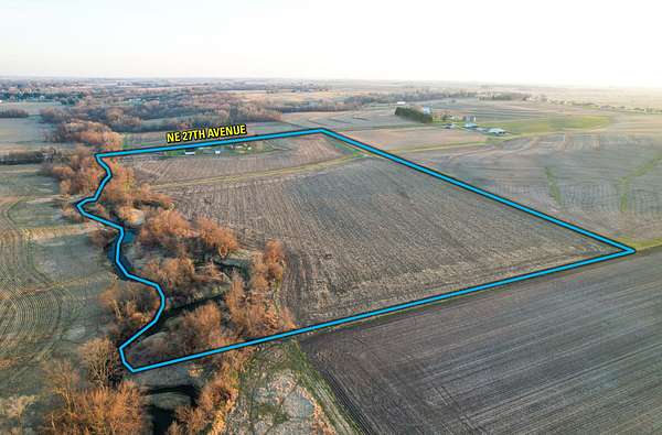 Tract 2 includes 32.05 acres m/l of farmland and a charming farmhouse with several well-maintained outbuildings, located on the south side of NE 27th Avenue, just east of the meandering Mud Creek. In addition, the land offers future residential development potential as the City of Altoona continues to expand southeast toward the subject property. The dwelling consists of a ranch-style home built in 1948, featuring 1,116 finished square feet, 2 bedrooms, 1 bathroom, and a one-car attached garage. The property also supports strong recreational opportunities, with a healthy population of whitetail deer and turkey. This rare combination of productive farmland, scenic landscape, and wildlife habitat creates an attractive setting for those seeking both investment potential and outdoor enjoyment, all within close proximity to the Des Moines metropolitan area.