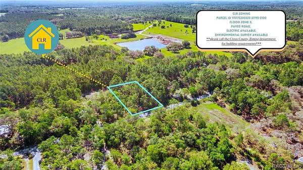 Est $231/moSELLER FINANCING AVAILABLE! 1.28-acre vacant residential lot with no HOA on N Boxthorn Ter, Crystal River, FL 34428. Ideally positioned near the Gulf and Lake Rousseau, with convenient access to Crystal River. Located outside of a flood zone. Power lines available. Environmental survey available. Easy drive to US Highway 98. Buyer to verify all details with the county.