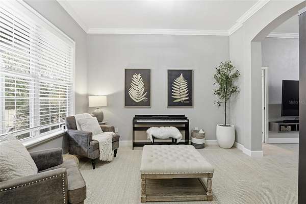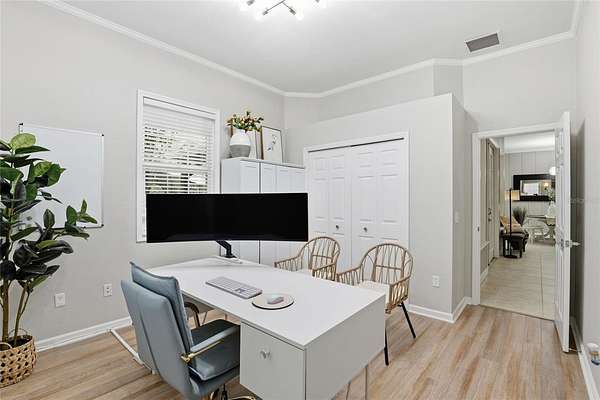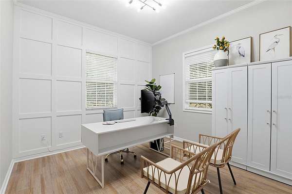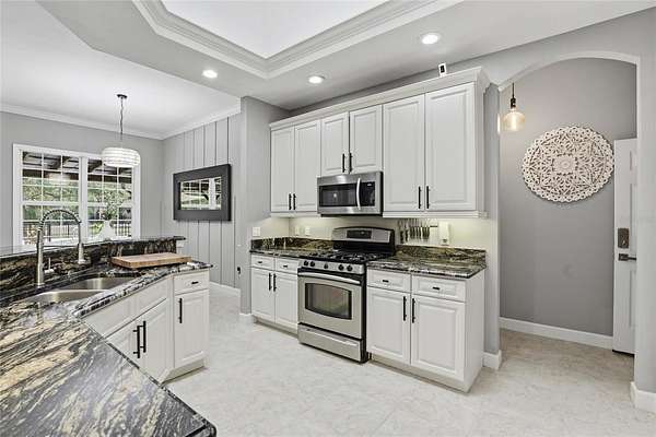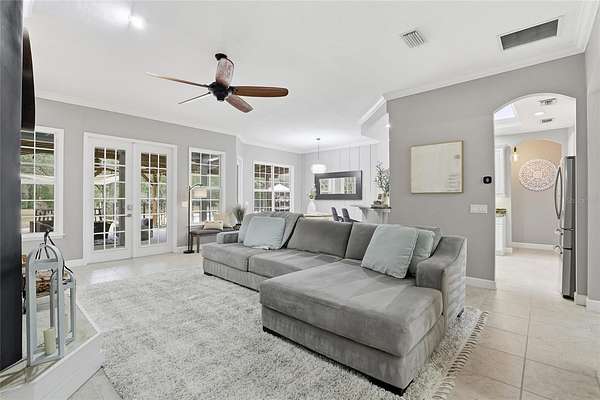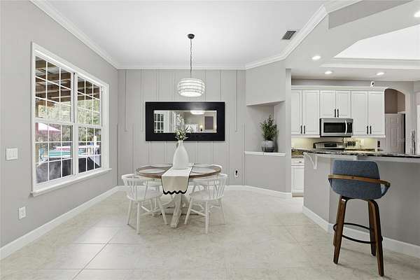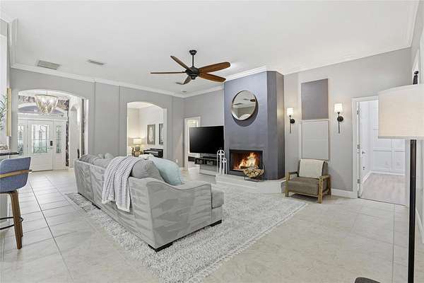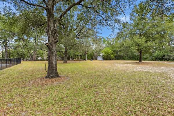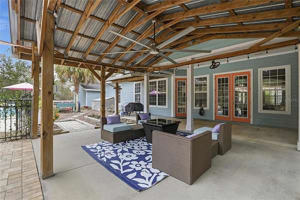 BRAND NEW ROOF WILL BE INSTALLED, AT NO COST TO THE BUYERS, ONCE UNDER CONTRACT. Set on a private, tree lined 1.71 acre lot, this light filled, saltwater pool home offers a rare sense of calm and separation while remaining just minutes from UF Health, the University of Florida, and Celebration Pointe. Surrounded by mature trees draped in Spanish moss and tucked within an established neighborhood, the setting feels peaceful, private, and effortlessly connected. With 4 bedrooms, 2.5 baths, and a large bonus room across 2,773 square feet of living space, the thoughtfully designed 3 way split floor plan strikes the perfect balance of natural flow with privacy, ideal for modern living, working from home, and hosting with ease. Vaulted ceilings and abundant natural light elevate the interior, highlighted by an oversized kitchen skylight that fills the main living space with warmth and openness throughout the day. The living room features a wood burning fireplace and opens seamlessly to the kitchen, creating a welcoming and functional gathering space. The kitchen offers custom wood cabinetry, granite countertops, stainless steel appliances, a gas range, generous prep and storage space, and two flexible dining areas designed for both everyday living and entertaining. A bonus or media room with a built in projector and screen and a half bath offers a private, versatile space for work, guests, or movie nights. Outside, the fully fenced backyard feels like a true retreat. A saltwater pool, expansive paver patio, and pergola style entertaining space create inviting areas for outdoor dining and relaxation. Mature and fruit bearing trees enhance both beauty and privacy, while a kids' play area with electricity, and a side cattle gate add thoughtful functionality. A detached two car garage and a separate two stall workshop with electricity provide exceptional space for storage, hobbies, or projects. Major systems have been updated, including HVAC in 2021, pool pump in 2021, and water heater in 2023. Privately set and meticulously cared for, this is a rare opportunity to own a beautifully maintained home on a secluded lot that seldom comes to market. Schedule your private showing today.