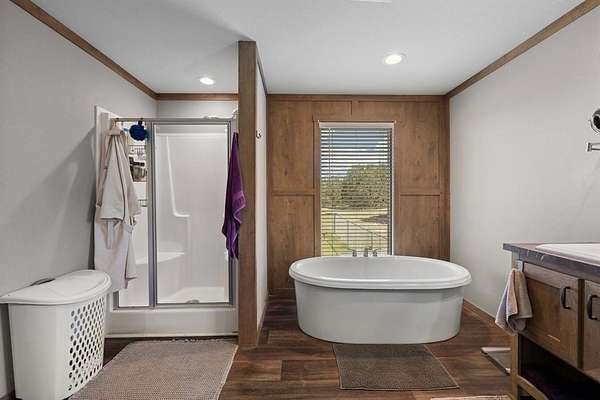 Inside, the open-concept layout connects a spacious living area with a beautifully designed kitchen—ideal for hosting, relaxing, or everyday living. With four bedrooms and two bathrooms, you’ll have room for family, guests, hobbies, or a home office. The primary suite is a standout, featuring a dual vanity, soaking tub, separate shower, and a huge walk-in closet.