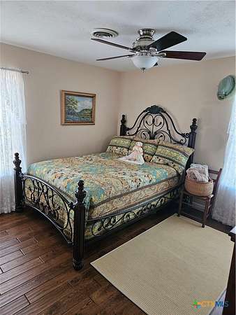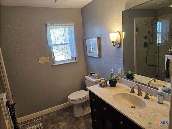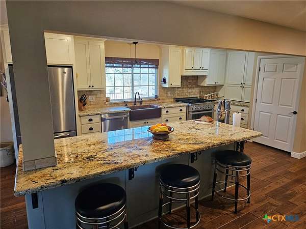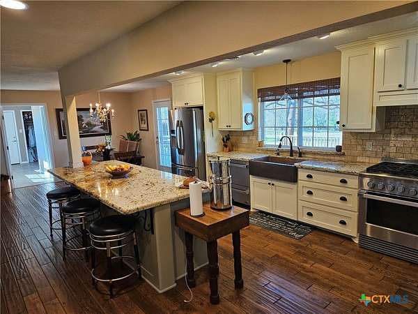 Totally updated 1800sf home sits down a 1500 ft tree-lined drive in the middle of 25 well-maintained acres of Coastal Bermuda and scattered trees. This home has a kitchen that will be the central focus of any gathering, a large center island with a granite countertop, and storage space galore. There are hardwood floors throughout the home with an old-style, hand-hewn look and feel. The wood stove sits between the main Living area and the kitchen, and it warms the entire living area. The primary bedroom has bay windows and a large walk-in closet, and the bath has a pebble-tiled floor and a walk-in shower. The guest bath boasts a standalone shower and a Japanese soaking tub. Through the French doors of the kitchen, you exit onto a large wooden deck suitable for any party or BBQ you may want to host. This is all looking out across the fenced pasture, and a regular grazing spot for the deer. The 60x30 barn/shop has 2 overhead doors and 1 walk-through door with a 40x30 concrete floor. The current owner uses the front 8 acres as a hay field. Water is supplied by a Southwest Milam Water Co. tap and a 280' domestic well that is primarily used for livstock and irrigating the well maintained lawn and flower . The location in the Texas triangle of DFW, Houston, and San Antonio is ideal. Only 1 hoiurto Austin or Waco, 45 minutes to Temple or Bryan/College Station