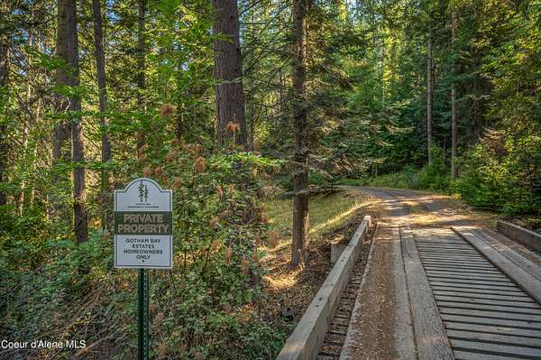 This stunning 2.20-acre secondary lakefront lot, is one of the most private in the entire Gotham Bay Estates development, offering unparalleled seclusion and breathtaking views of Coeur d'Alene Lake. Ideal for your dream home, this lot is located at the end of a quiet, low-density culdesac with only four homesites (two already built), ensuring exclusivity and tranquility. Bordering 74 acres of HOA common area land, it guarantees lasting privacy and provides ample space to explore the natural beauty of The Preserve at Gotham Bay Estates. Enjoy access to a private 3-acre lakefront park, exclusive to lot owners, featuring a dedicated parking area and storage for canoes or paddle boards. This lot is build-ready with an approved septic permit for a 4-bedroom home, water already connected to the building pad, and electricity installed with an on-site panel. HOA-managed community water eliminates the need for a well. This is a rare opportunity to build your custom home with potential for an ADU (Accessory Dwelling Unit) in the most private setting within Gotham Bay. Don't miss out schedule a visit to experience the unmatched serenity and scenic beauty of this exceptional lot!