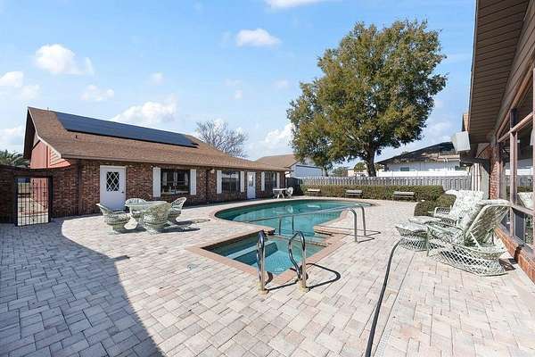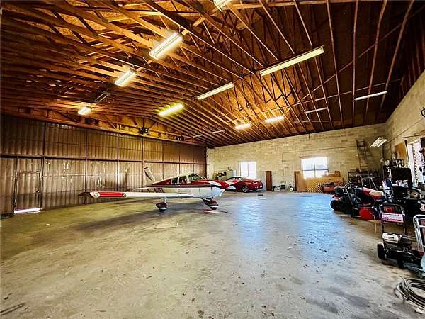One or more photo(s) has been virtually staged. Welcome to a rare opportunity in the Leeward Air Ranch, a gated Central Florida airport community. Warm and inviting 3/2 brick home with large hangar on 1.77 acres is offered only to licensed pilots who own an airplane! Enjoy the view from your living room with wood burning fireplace and cathedral ceiling with exposed beams. Windows at the front and back of the home go all the way to the top for lots of natural light. Wide plank, solid hardwood floors are beautiful and made to last. See and feel the quality. The primary suite is 20x20 with a fireplace and opens through French doors to the huge Florida room looking out to an in-ground saltwater pool. Paver decking leads you beyond the private courtyard to the 50x60 hangar. With a door opening of 50x14'8” or higher, you can store your airplane and also fit an RV and/or boat. There’s so much more! Attached to the hangar are an over-sized 2 car garage and an apartment with full kitchen, full bath and laundry-- ideal for guests, extended family or pilot quarters. Want to change your own oil? There's a maintenance pit with water and power! Need more storage? Check out the full basement! New shingle roof was installed on both the house and hangar in 2019. Whole house solar panels installed in 2025 will keep the electric bill low. The lease will be pre-payed by the seller for the next 24 years! Property is on well and septic-- no water or sewer bills! Taxi from your home to the north/south runway, a reinforced and lighted grass strip 6200 x 165. Many activities await the new owner such as fly-in's and weekly fly-out's with blue skies all year long. Non-aviation activities include art, bingo, exercise, music events, hangar happy hours, motorcycle rides, etc. Celebrate the holidays with your neighbors in our Red Barn Community Center. Golf enthusiasts will love the beautiful 18 hole course nearby. Low, low HOA fees, only $1465 a year. Don't wait, make this house your forever home. Priced right so you can update to your style!