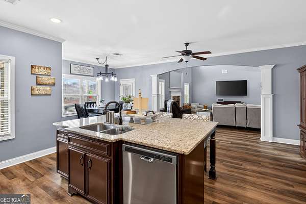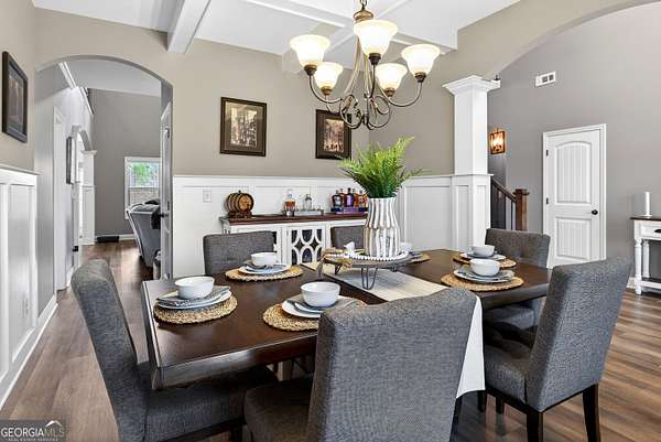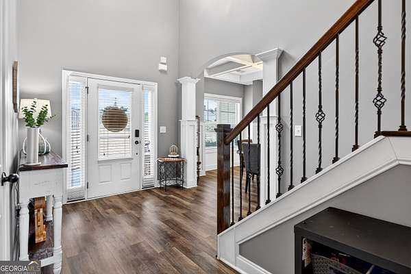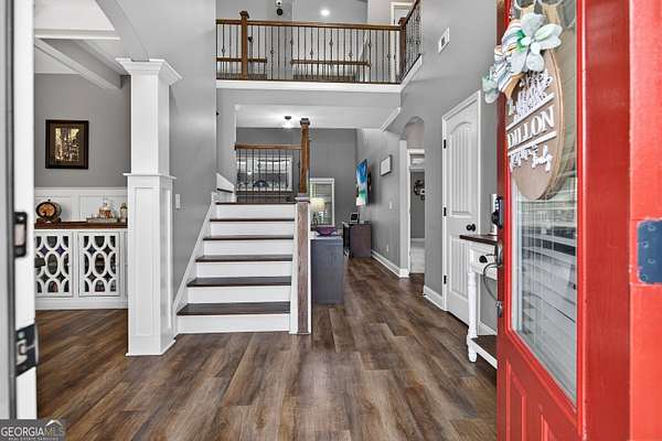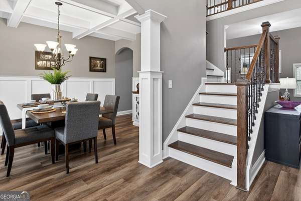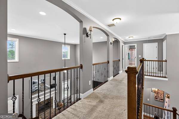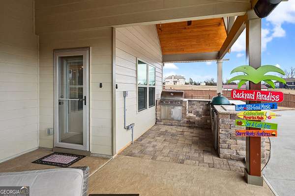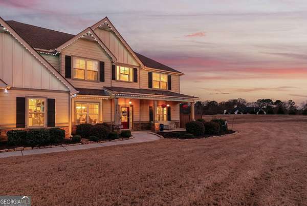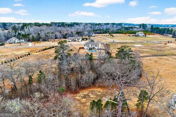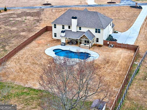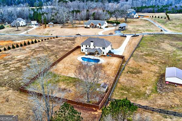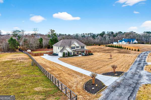 Five bedrooms, five acres, and less than 10 minutes to downtown Senoia. This property gives you space, privacy, and the kind of outdoor setup most homes simply don't have. Inside, the main living area features a true two-story ceiling with a stone fireplace and open sightlines into the kitchen. It feels open without being overwhelming and works well for both daily living and larger gatherings. The kitchen is built for function with granite countertops, stainless appliances, plenty of cabinet and pantry space, and a large island that serves as the focal point. It connects easily to the dining and living areas, making the layout practical and efficient. The primary suite is on the main level. The bathroom includes a tiled shower, soaking tub, and a layout that gives you space without wasted square footage. Additional bedrooms upstairs provide flexibility for family, guests, or home office use. One of the standout features is the dedicated movie and entertainment room. The projector and large screen remain with the home, so it's ready for movie nights, sports, or gaming from day one. Another unique feature is the permanent holiday lights installed on the front of the house. These lights add a significant amount of extra lighting to the front of the house and a custom holiday lighting package with dozens of combinations for every holiday throughout the year. The backyard is designed for actual use, not just looks. There is an in-ground pool with a lower patio with a built-in fire pit and seating wall, a covered back porch, an outdoor fireplace with a mounted TV, and an outdoor kitchen setup for grilling and hosting. The layout creates multiple gathering areas so larger groups aren't confined to one space. Whether it's a quiet evening by the fire pit or hosting a pool day, the space supports it. The five acres provide usable space and privacy. There's room to add a shop, garden, or simply enjoy the buffer from neighbors all while staying close to Senoia's restaurants, shops, and events. If you're looking for acreage, a master-on-main layout, and a backyard built for entertaining without giving up convenience to town, this home is it.