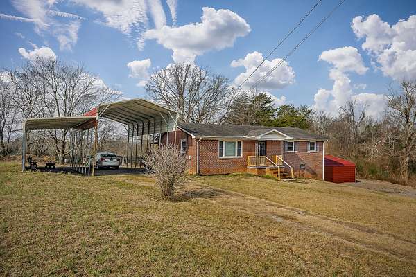 Brick home on 2.63 acres in Smithville offering 3 bedrooms, 1 full bath, and approximately 1,250 square feet on the main level. This property features a full unfinished basement, covered front porch, covered back deck, and multiple detached carport structures providing ample covered parking and storage, including one oversized carport suitable for an RV or camper.