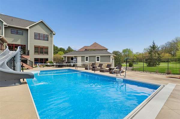 The home you've been waiting for has arrived! Nestled on 1.5 acres in Johnston, Iowa, this stunning property offers luxury, comfort, and resort-style living with an incredible saltwater sport pool and private pool house, creating a true Mediterranean-inspired retreat. Custom-built in 2008/2009 by K & V Homes, this spacious residence features over 4,500 square feet of living space with 5 bedrooms (one non-conforming), 4 bathrooms, 2 gas fireplaces, and a 3-car garage with extensive built-in storage. Inside, you'll find two generous living areas, gourmet kitchen, bright 3-seasons room, and a dedicated home office with a custom desk and built-ins, perfect for working from home. The homeowners have meticulously maintained and updated the property with new carpet throughout most of the home (2026), Cafe refrigerator and two additional basement refrigerators (2026), geothermal heat pump (2024), dishwasher (2023), updated quartz countertops in the laundry room, plus a newer roof, water heater, and pool vacuum. Additional features include Pella windows and doors, Kinetico whole-home water filtration system with three reverse osmosis units, Control4 smart home system, an invisible dog fence, and a full 1.5- acre irrigation system. This is a one-of-a-kind property, schedule your showing today!