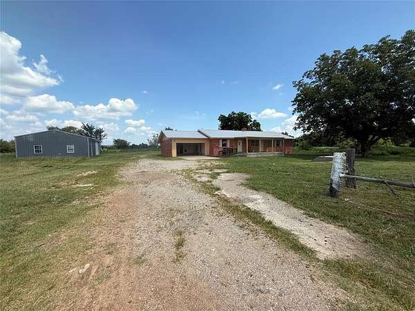 This charming 3-bedroom, 2-bath home sits on 10 surveyed acres m/l, fully fenced with a mix of durable barbed wire and attractive vinyl fencing. Inside, you'll find a spacious living room centered around a cozy fireplace, a large dining area just off the kitchen, and beautiful hardwood floors throughout. The property includes a metal shop with a concrete floor and overhead door, plus a barn with a concrete floor and lean-to for additional storage or livestock shelter. A storm shelter offers peace of mind, and the property's Hwy 9 frontage provides excellent access--just a half mile from Dustin, Oklahoma. According to the seller, the home offers approximately 1,700 sq ft of comfortable living space in a peaceful rural setting.